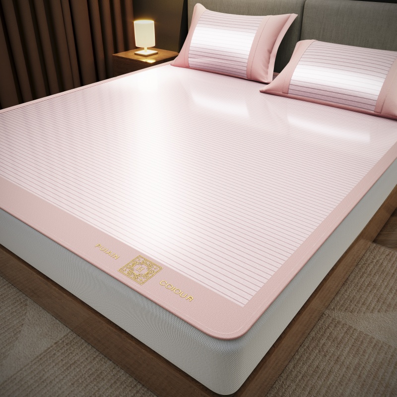 当前位置: 91家纺网 > 商品网购 > 床上用品 > 凉席 > 其他凉席 > 孩子王家纺 2025凉感冰丝藤席凉席席子-英文条纹席 千禧粉床笠