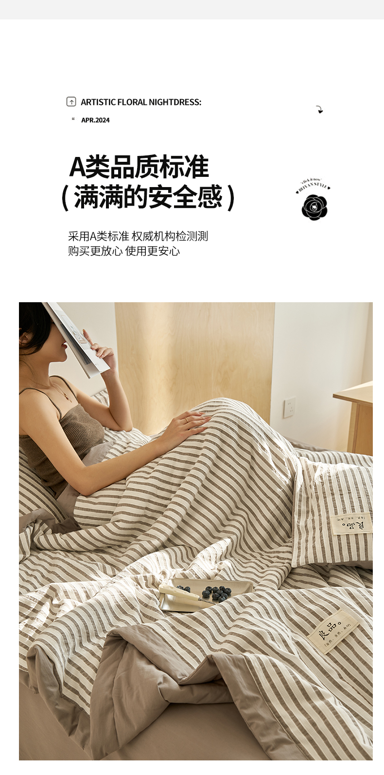 当前位置: 91家纺网 > 商品网购 > 被子 > 夏被 > 寐绸家纺 2025新款纯棉水洗棉简约条纹提花大豆纤维夏被四件套 简约条纹-驼色