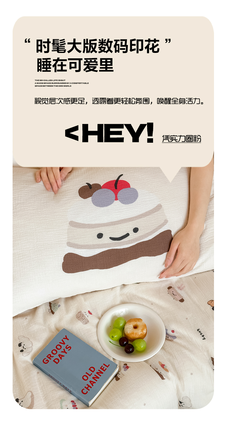 (总)卡巴伦家纺 2025新款全棉皱皱纱大版卡通数码印花款四件套二,酥酥熊-粉,腊肠总裁,生日万岁-粉,生日万岁-蓝,生日万岁-米,酥酥熊-米黄,汪汪掀被-灰,汪汪掀被-绿,小狗没烦恼