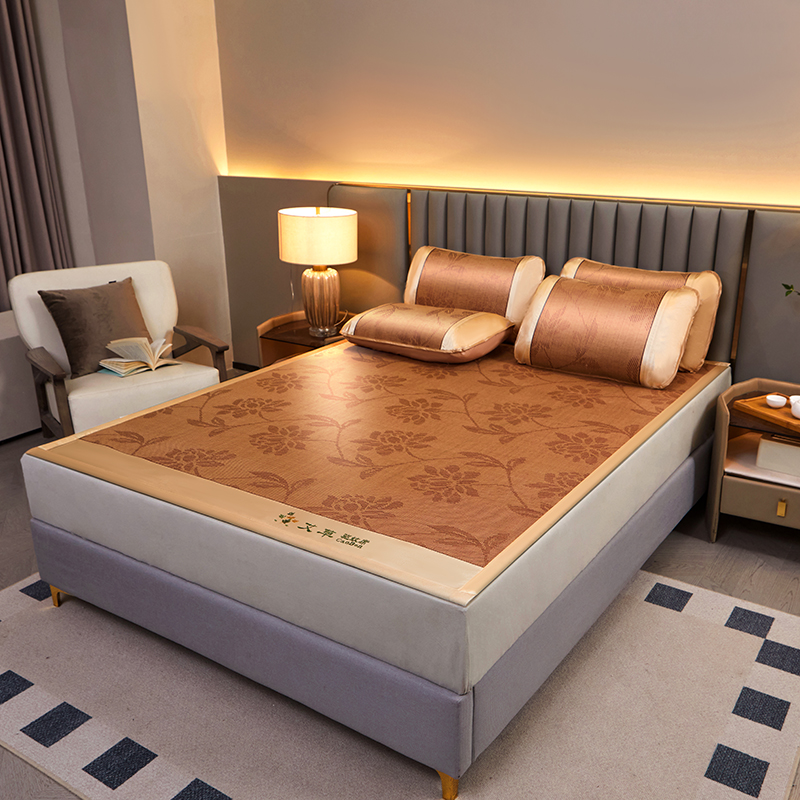 席之家 2025新款艾草宽边款凉席藤席三件套 水中花