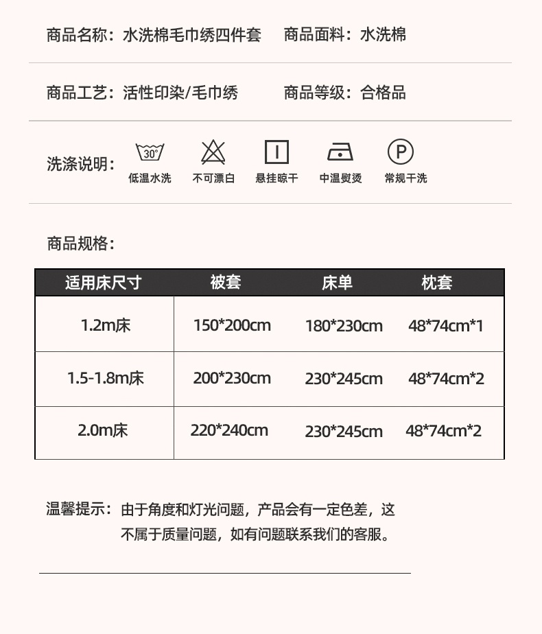 3、通州区市场监督局友情提醒,近期涉及到床上用品不褪色不掉毛不缩水的投诉和以世界知名品牌图案为面料的床品举报较多。请各商家自检自查,对照整改或进行下架处理。