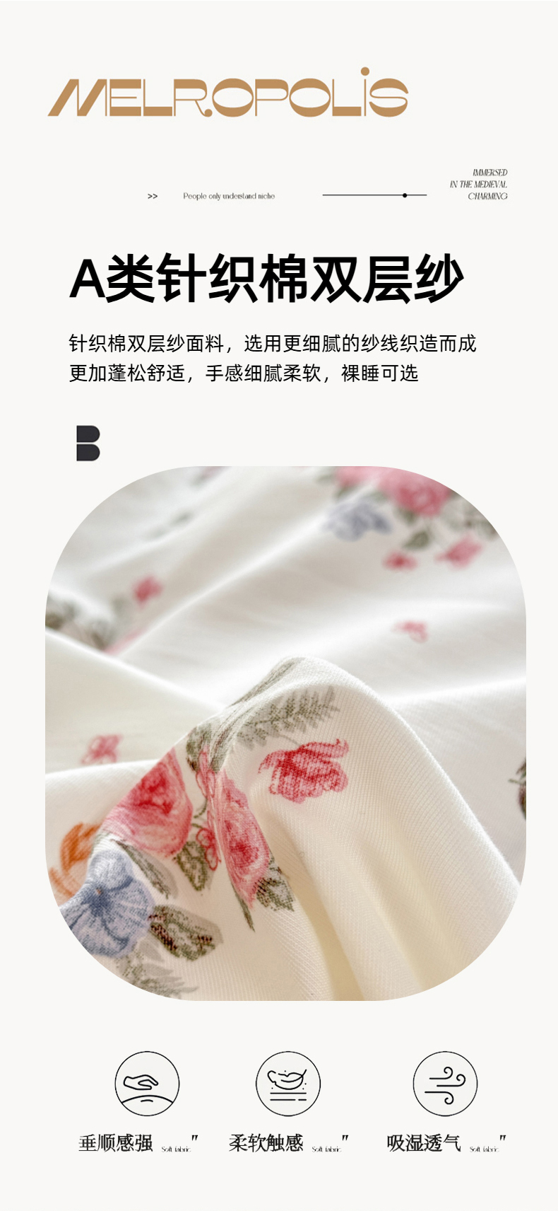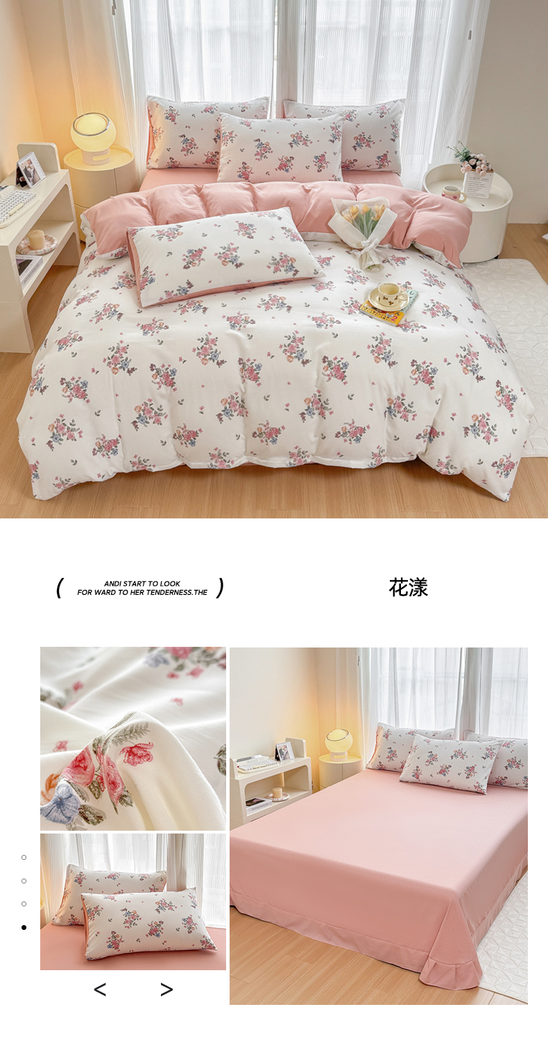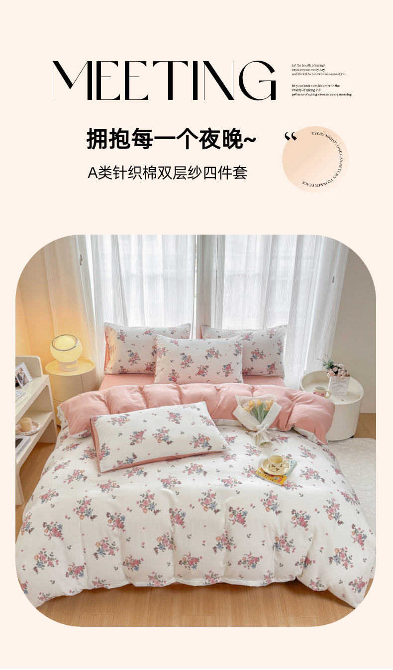 商品名称:铭浩家纺 2025新款A类针织棉双层纱四件套 花漾
