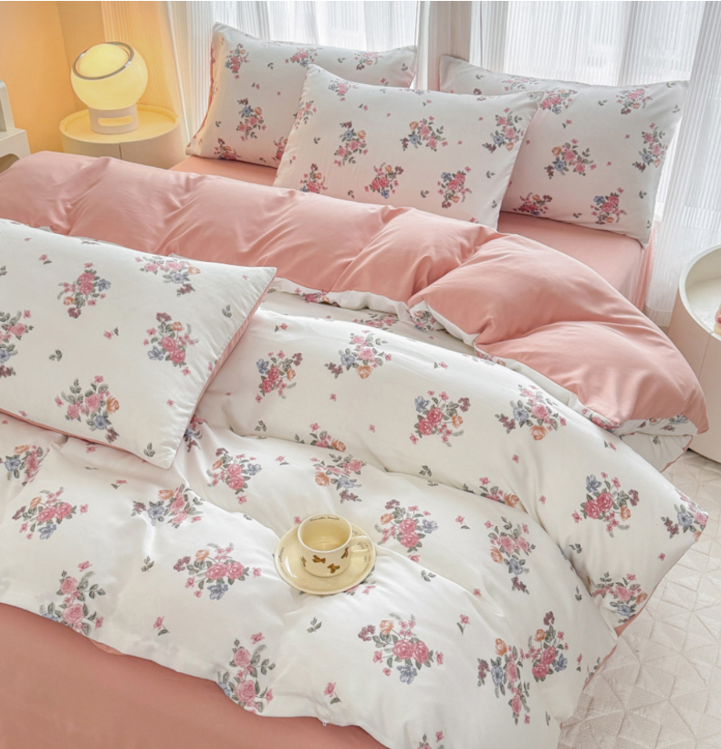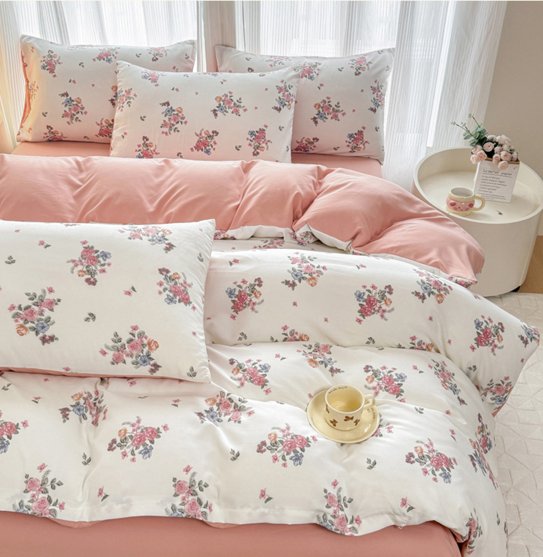 铭浩家纺 2025新款A类针织棉双层纱四件套 花漾