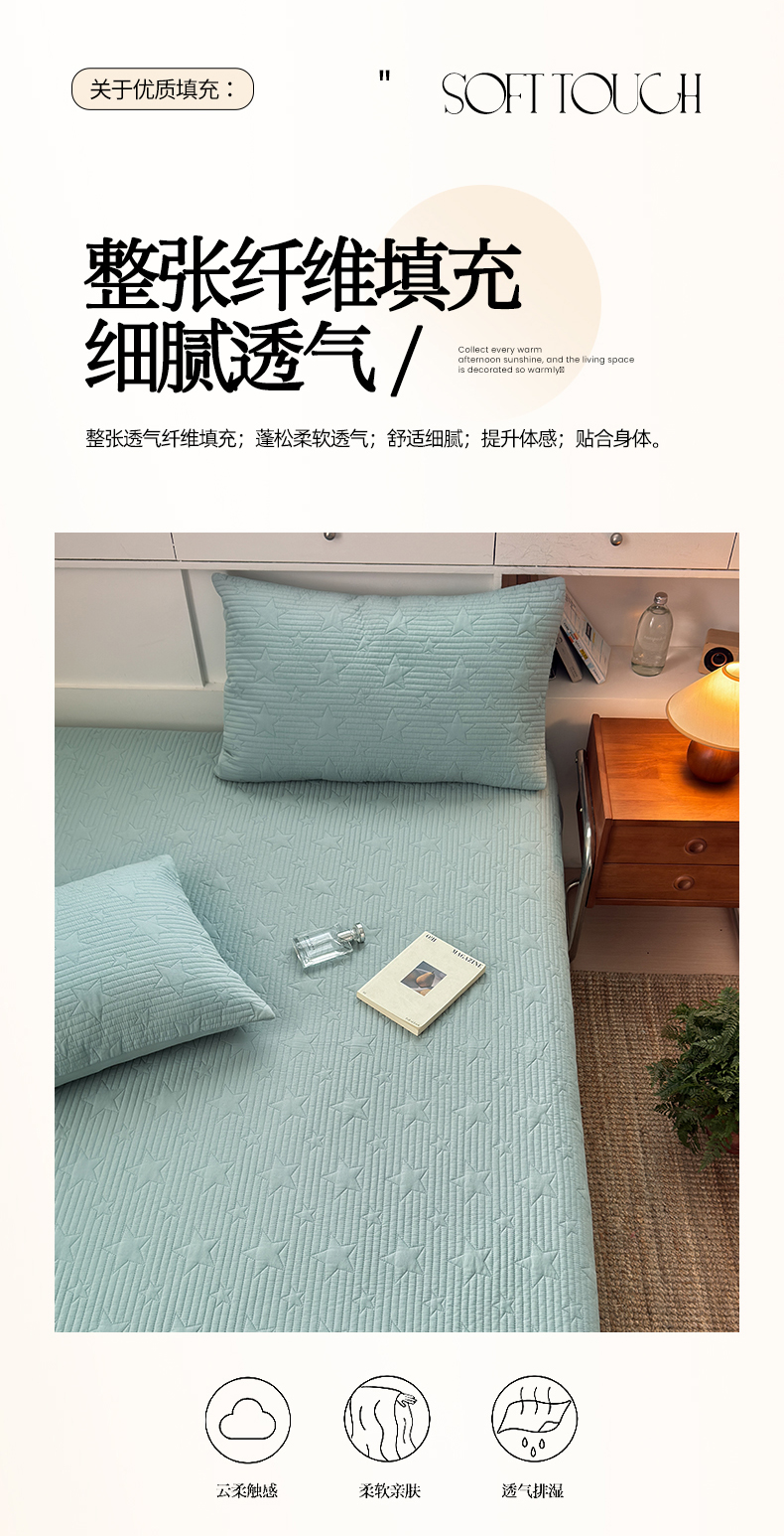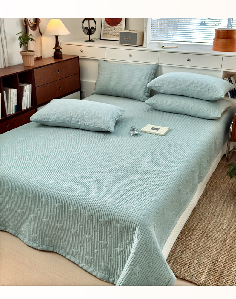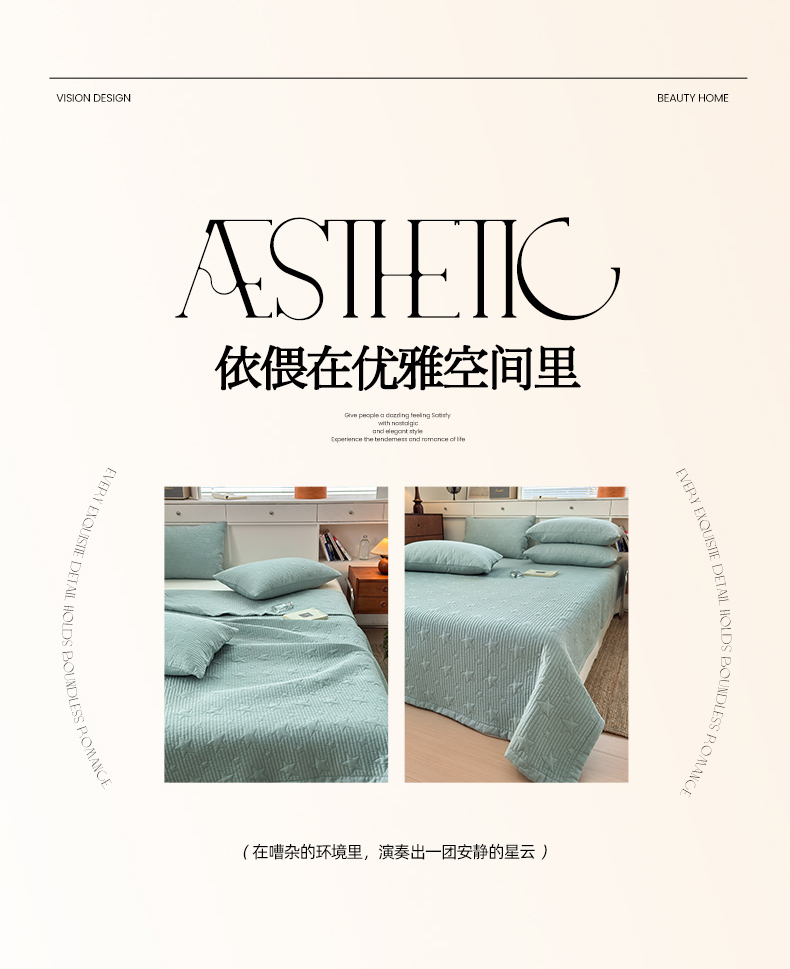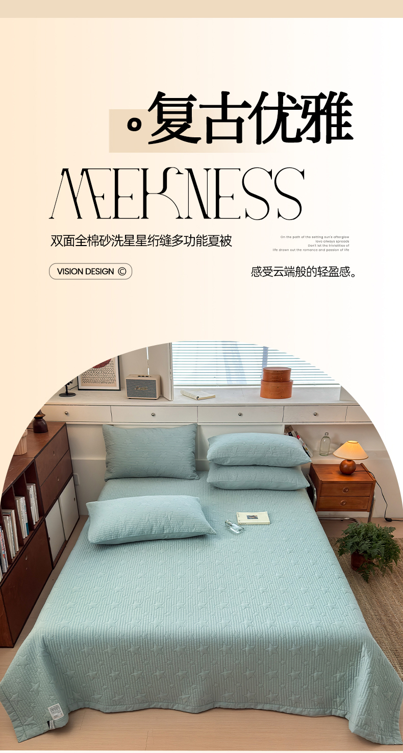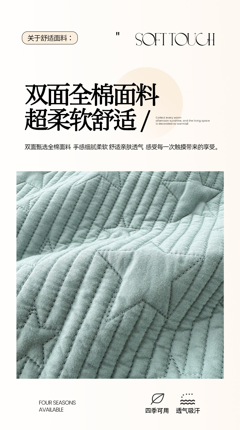 • 91家纺网 家纺一手货源 找家纺 漫调家纺 2025新款繁星绗缝夏被 复古风实拍 繁星绿