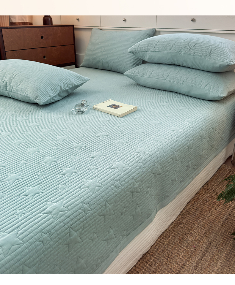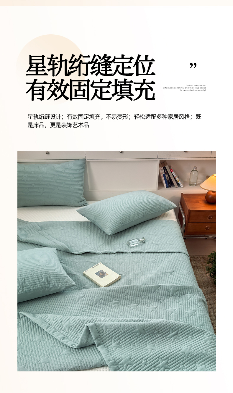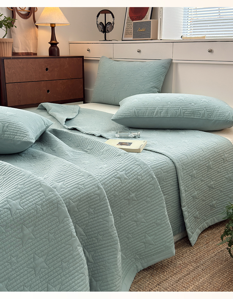 漫调家纺 2025新款繁星绗缝夏被 复古风实拍 繁星绿