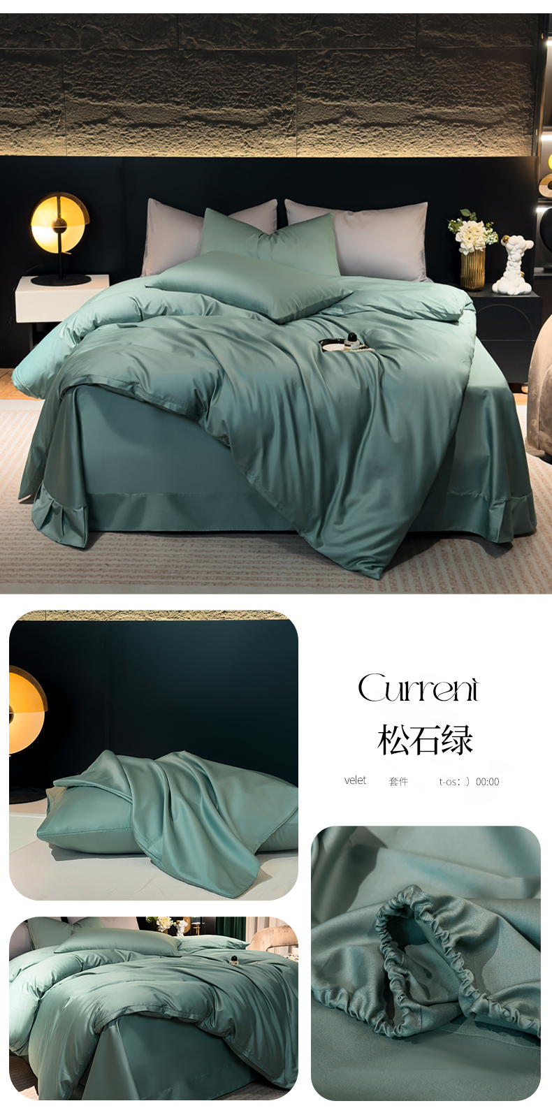 当前位置: 91家纺网 > 商品网购 > 床品套件 > 四件套 > 全棉普通四件套 > 氧家2025新款60支全棉贡缎纯色四件套 松石绿