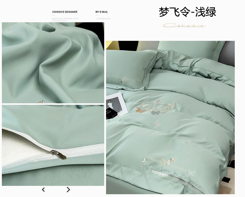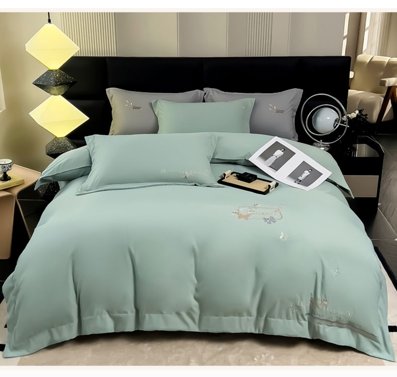 曲之慕 2025新品四季款高端刺绣四件套简约可水洗轻奢纯色刺绣四件套 梦飞令浅绿