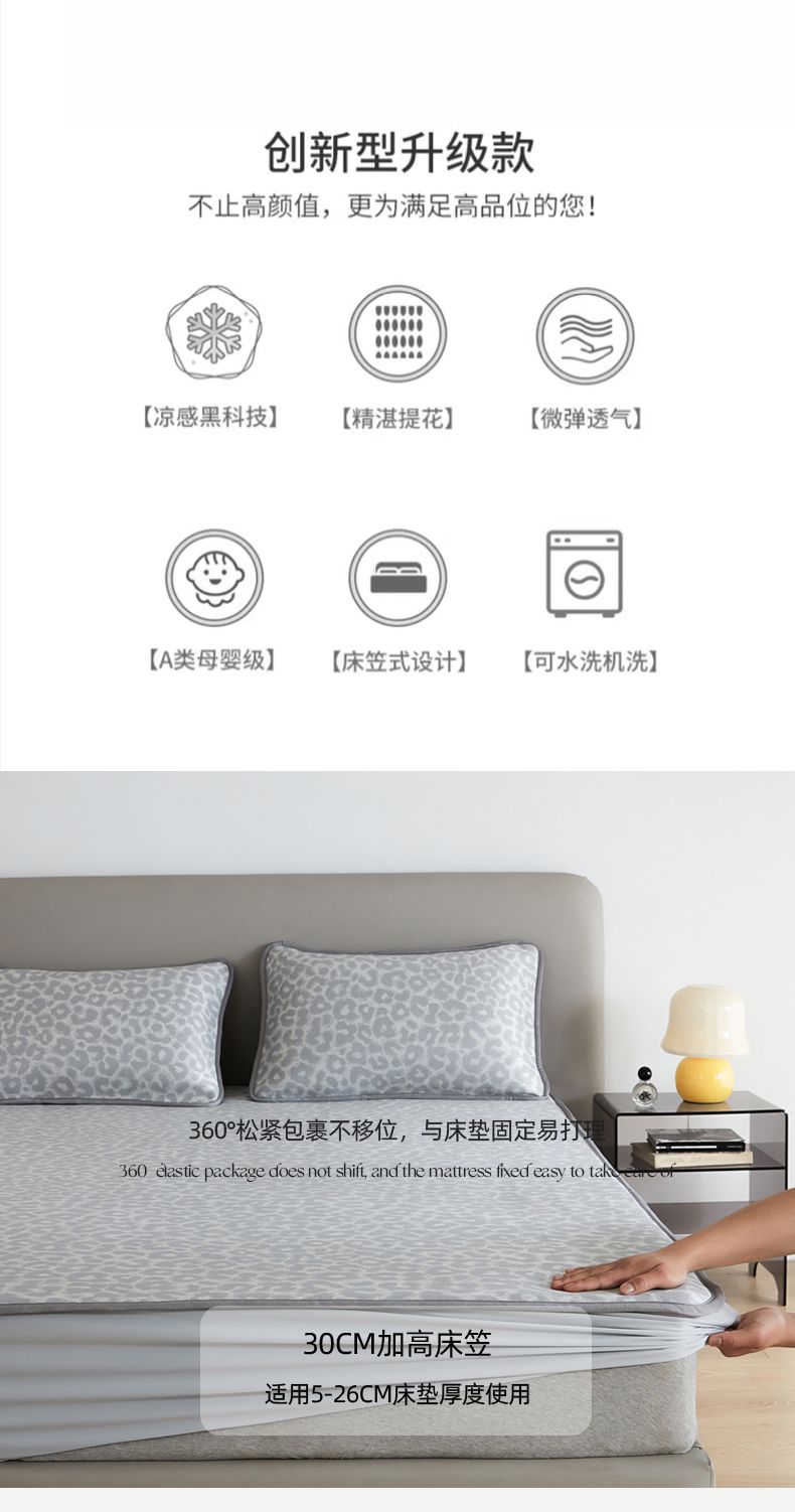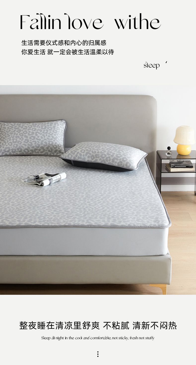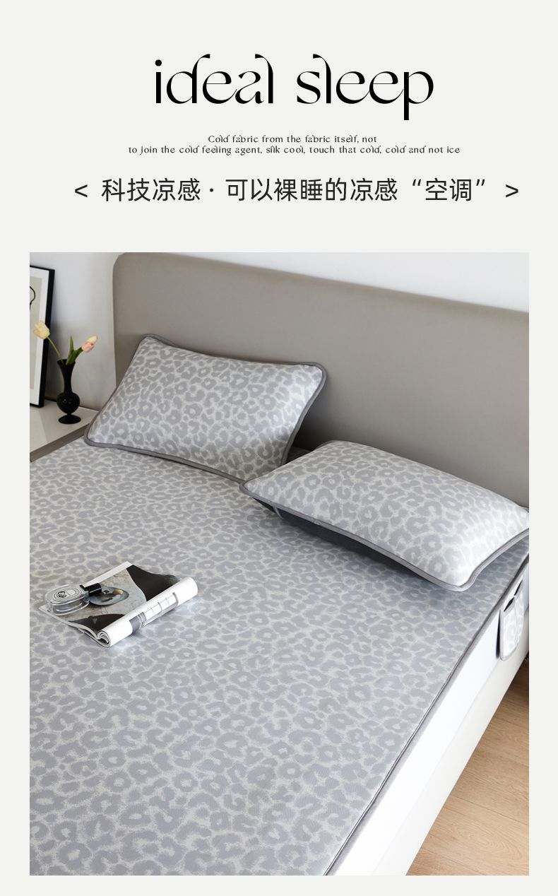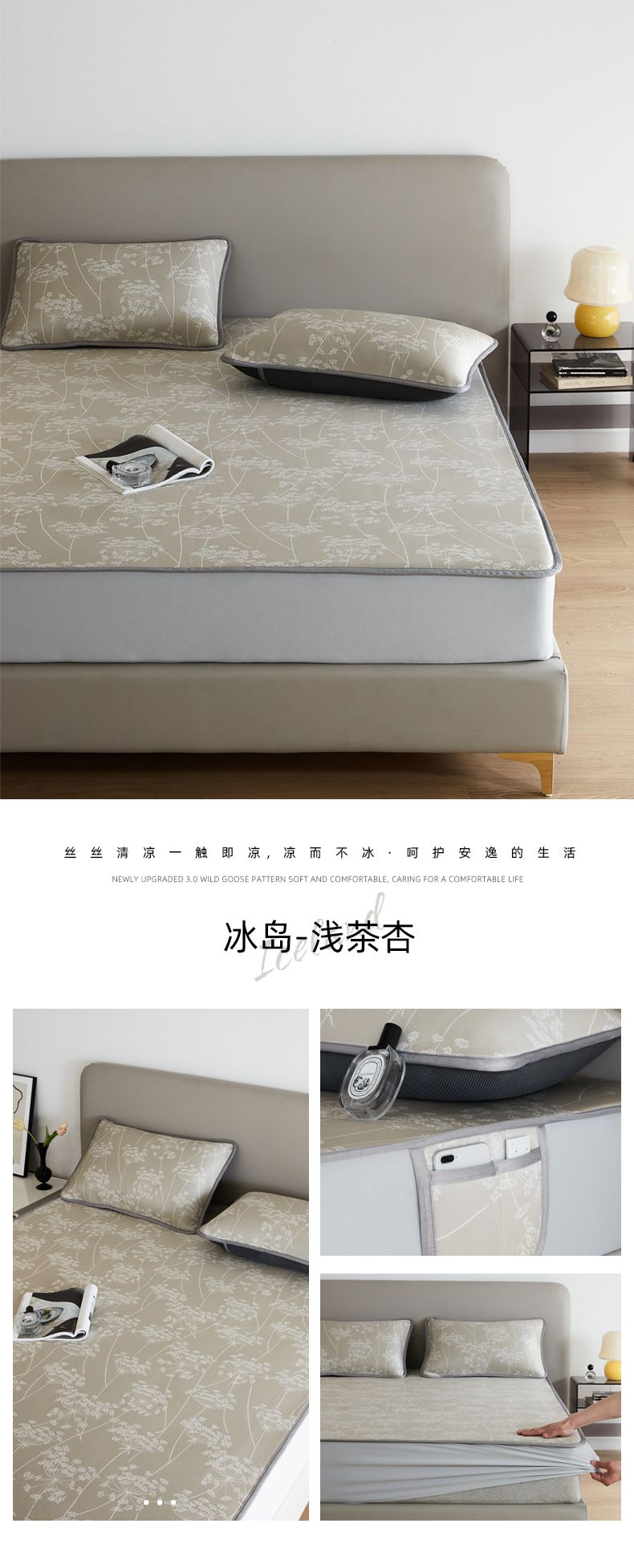千朵森 2025新款冰岛冰感丝床笠款凉席三件套-风格一 冰岛-山茶灰