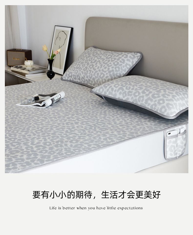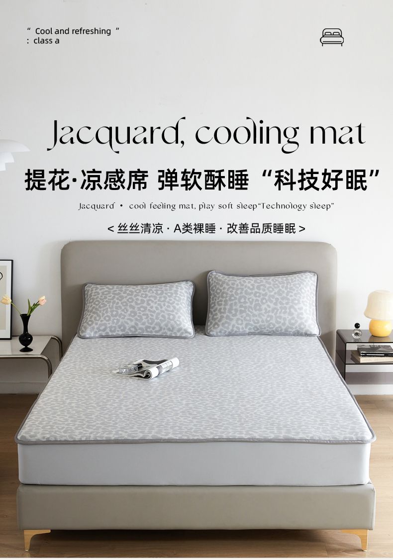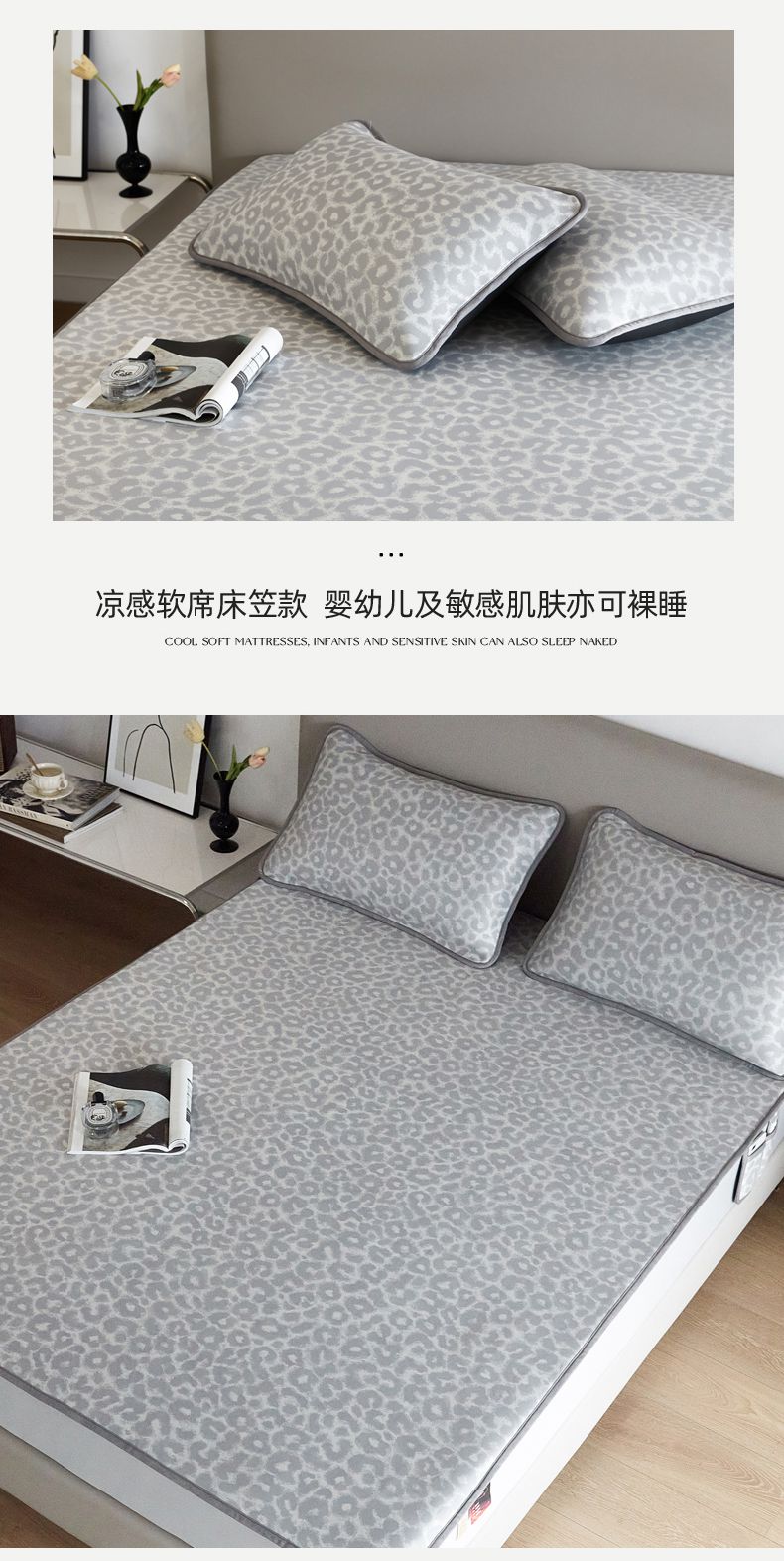 商品名称:千朵森 2025新款冰岛冰感丝床笠款凉席三件套-风格一 冰岛-山茶灰
