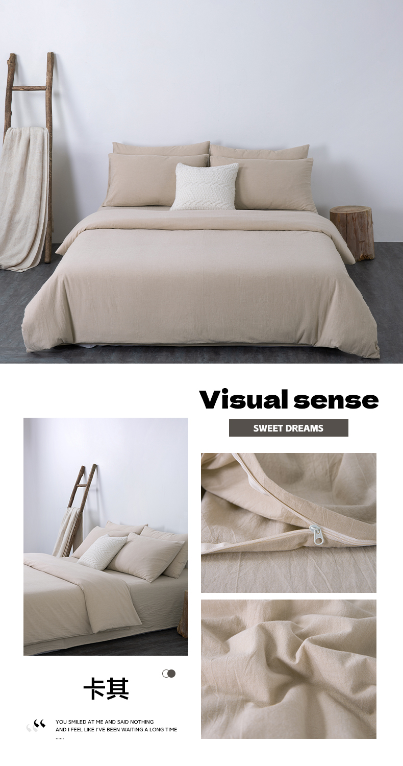 • 91家纺网 家纺一手货源 找家纺 玖弘家居 2025新款水洗棉单被套 卡其