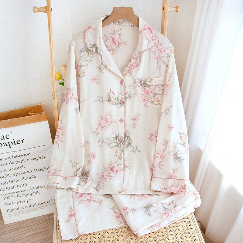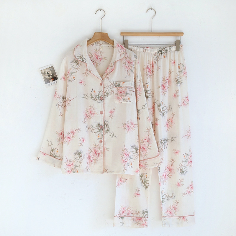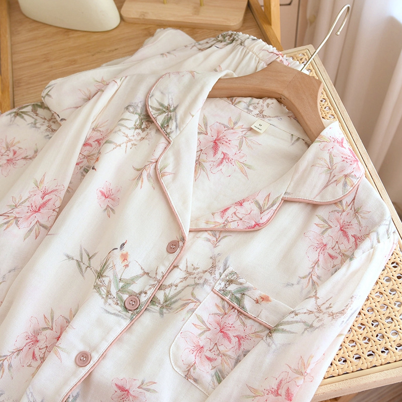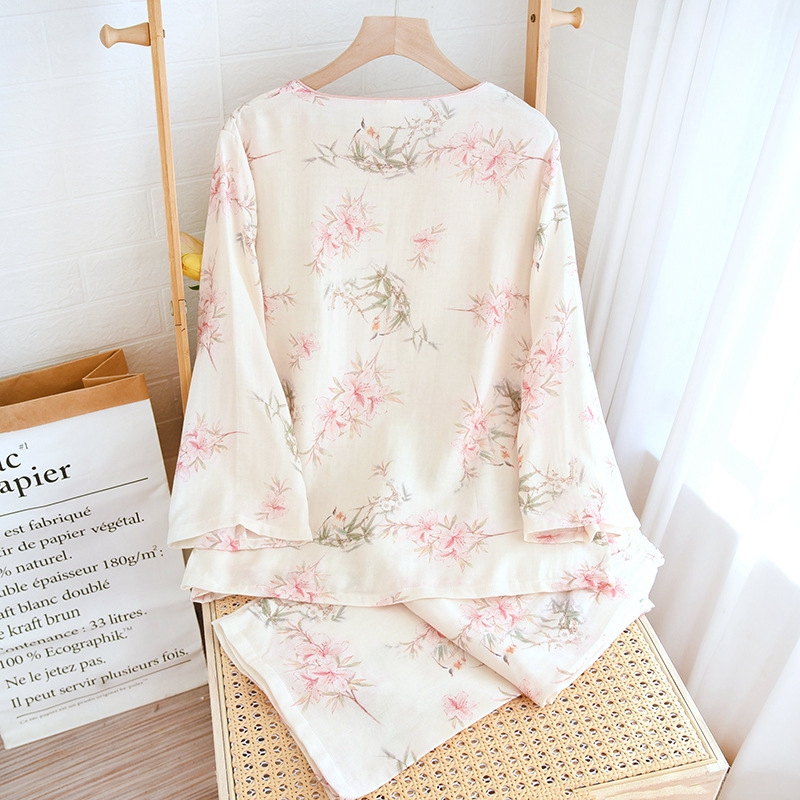 洛兰沙家居馆【只代发】【只代发】 2025新款国风竹纤维鸟语花香春夏女睡衣大码长袖长裤自带凉感休闲套装 ls1309
