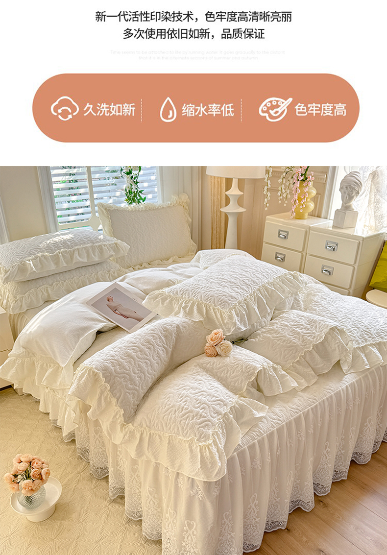 当前位置: 91家纺网 > 商品网购 > 床品套件 > 四件套 > 全棉普通四件套 > 2025新款A类华夫格大豆棉床裙四件套-梦幻花园 梦幻花园-米