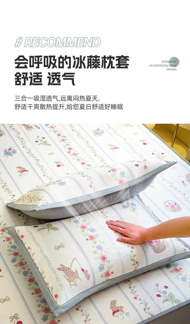 (总)全季家居 2023新款A类轻奢抗菌冰藤席,和意款-孔雀蓝,和意款-星际灰,和意款-薄荷绿,字母款-孔雀蓝,字母款-薄荷绿,字母款-星际灰