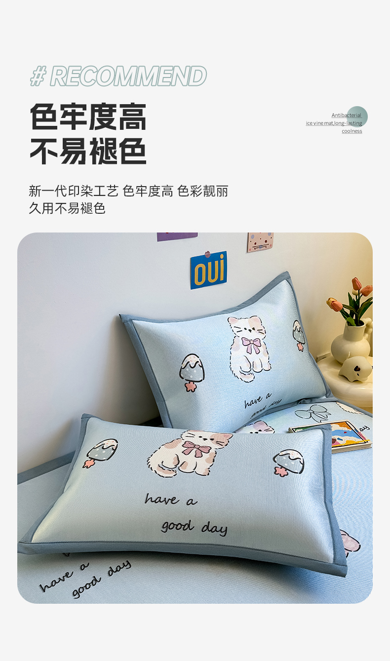 (总)全季家居 2023新款A类轻奢抗菌冰藤席,和意款-孔雀蓝,和意款-星际灰,和意款-薄荷绿,字母款-孔雀蓝,字母款-薄荷绿,字母款-星际灰
