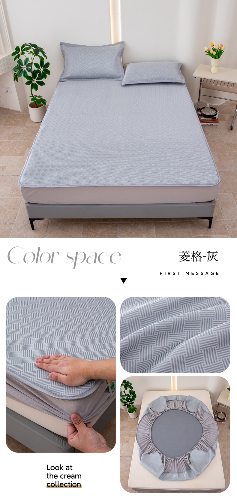 (总)凌云家纺 2025新款提花凉感冰丝席床笠款三明治凉席三件套,菱格-灰,菱格-蓝,甜心-粉,甜心-蓝,心海-蓝,雪漾-灰,雪漾-蓝