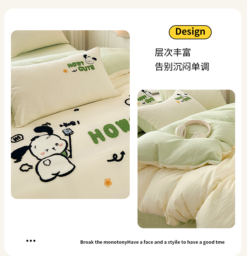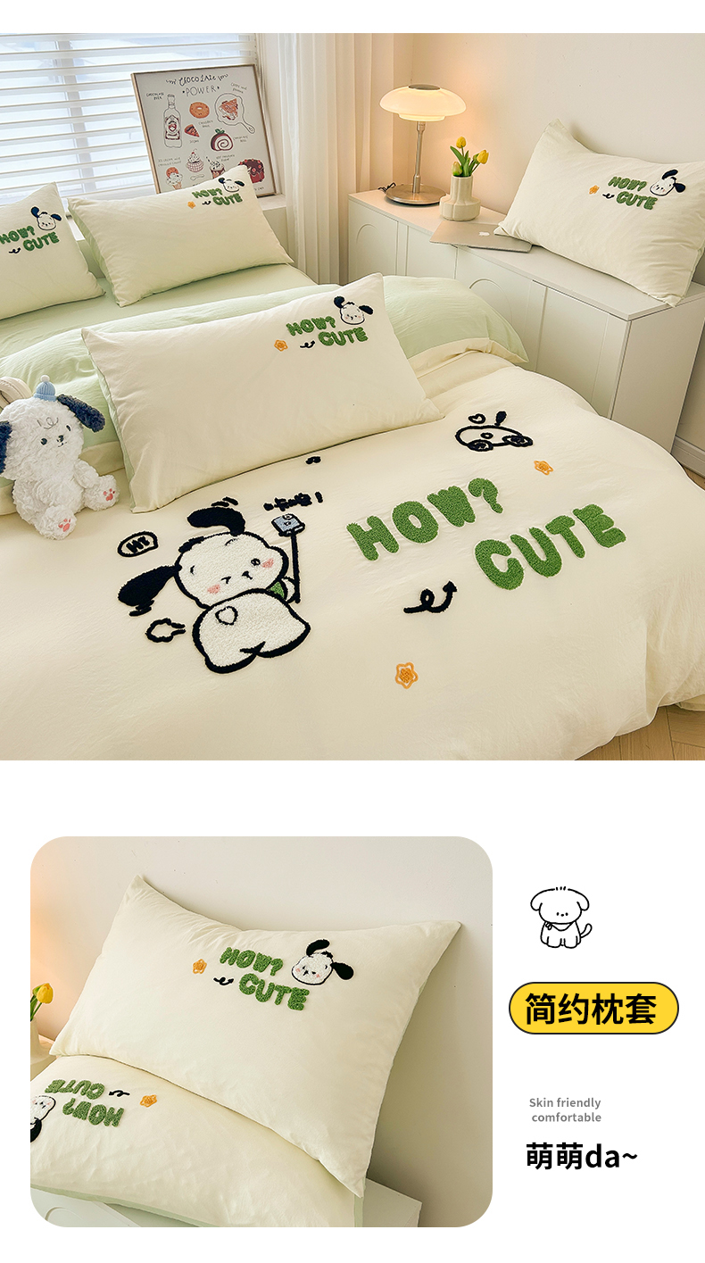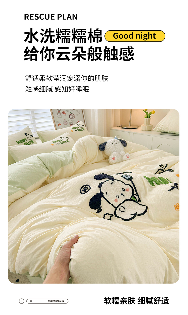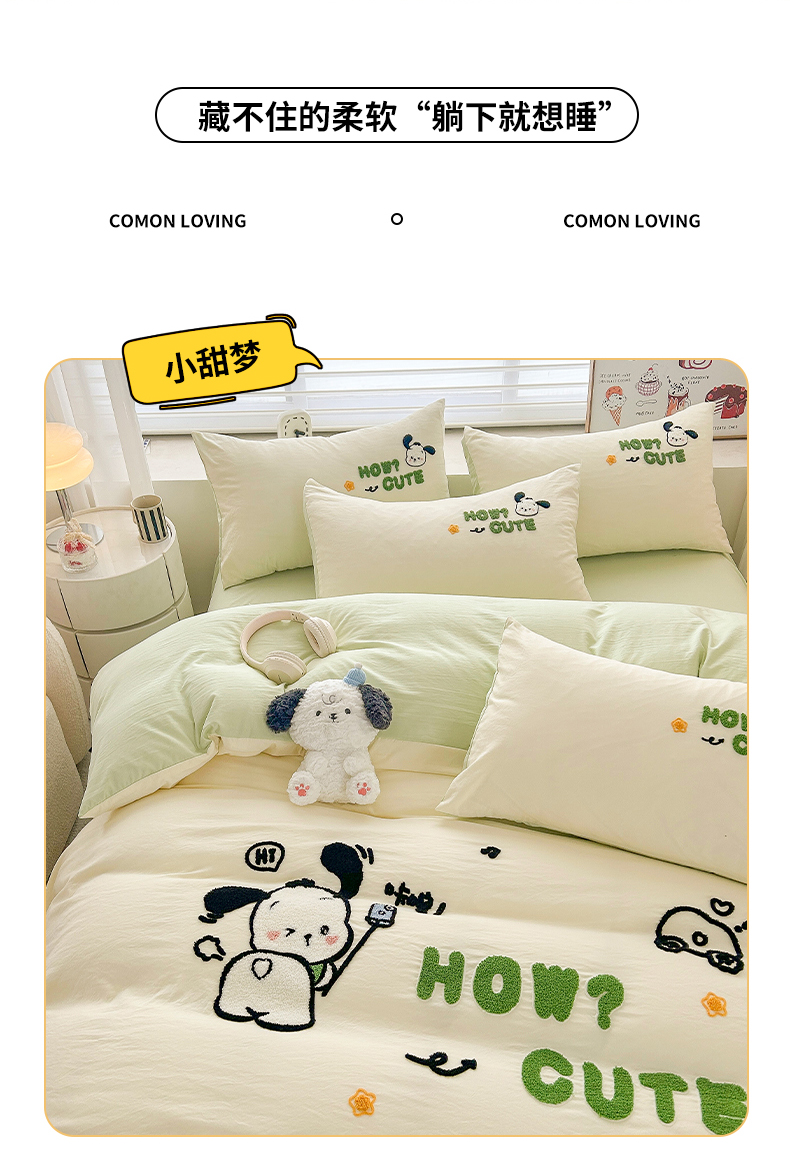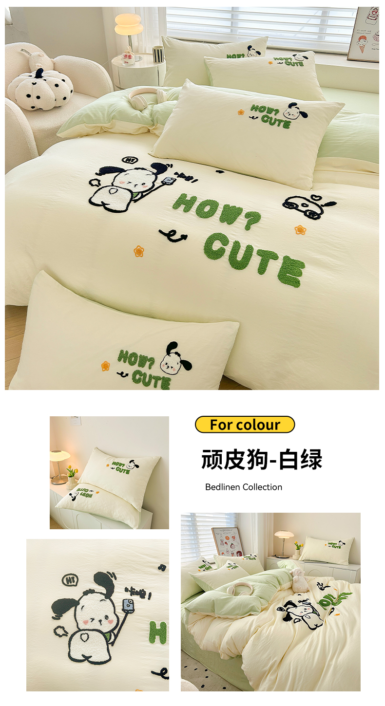 商品名称:包小包 2025新款糯糯绵毛巾绣可爱卡通爆款四件套 顽皮狗-白绿
