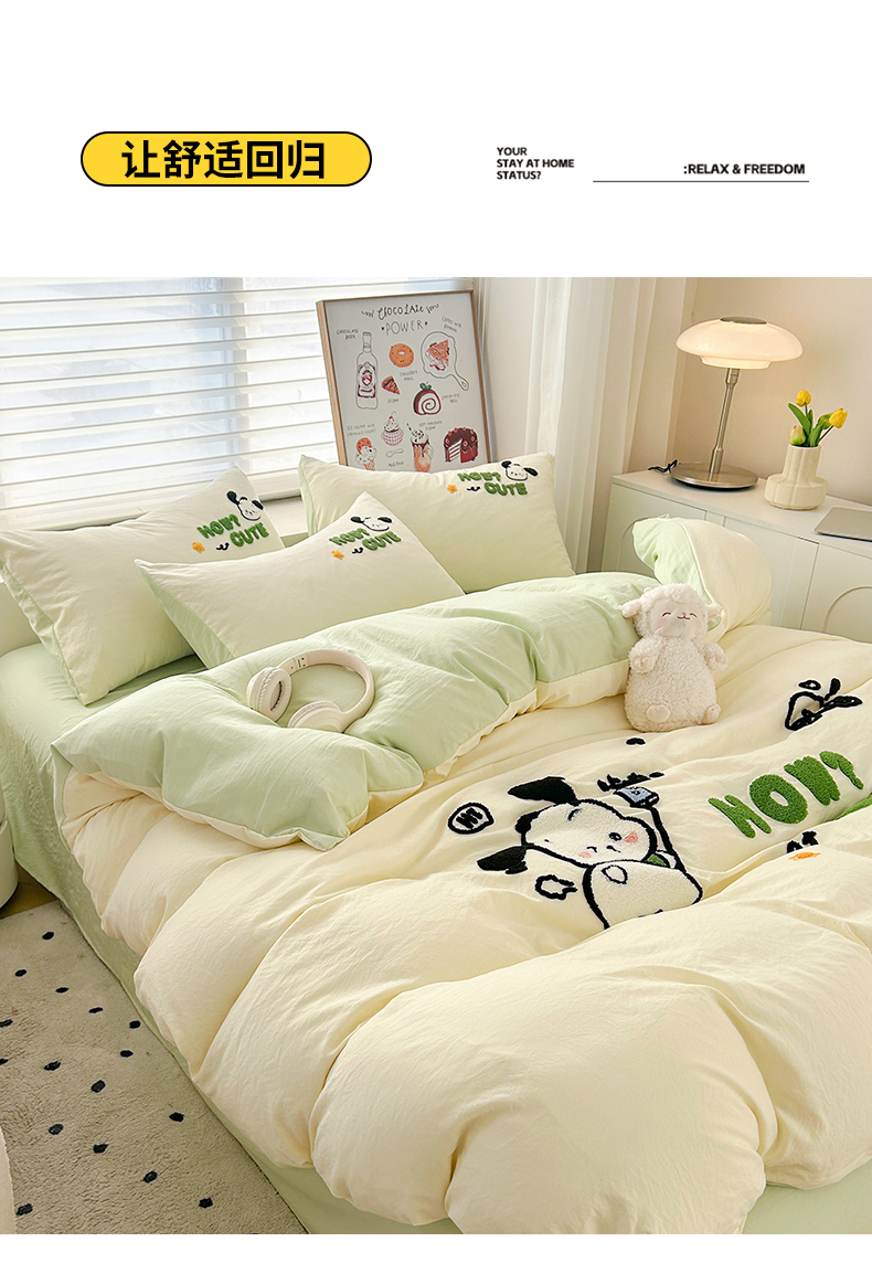(总)包小包 2025新款糯糯绵毛巾绣可爱卡通爆款四件套,顽皮狗-白绿,好朋友-奶咖,猫小桃-蓝,奶油兔-粉,顽皮狗-粉,顽皮狗-灰,顽皮狗-奶咖,顽皮狗-雾蓝,小熊猫-绿