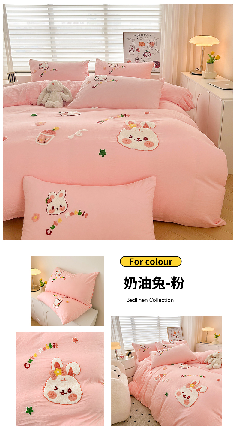 (总)包小包 23直播爆款高克重刺绣牛奶绒四件套月小兔系列提供买家秀,月小兔-粉白双拼,月小兔-奶油黄,月小兔-天空蓝,月小兔-香草绿,月小兔-香妃紫,月小兔-樱花粉