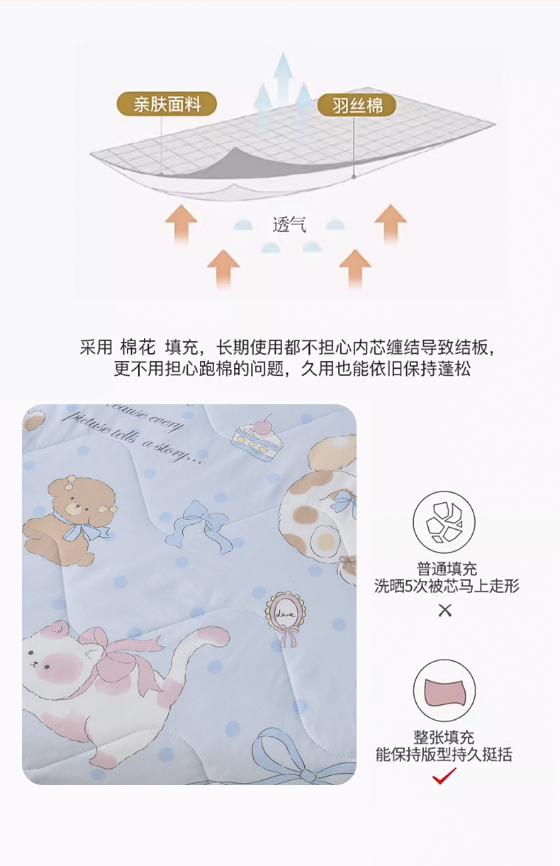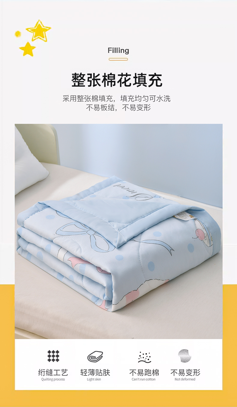 商品名称:鑫顺欣 2025新款儿童棉花夏被 奶蓝小喵