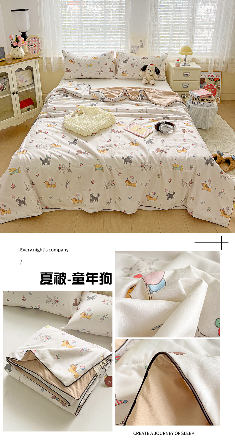 商品名称:2025春夏新款嵌绳款云柔水洗棉单夏被夏凉被空调被 嵌绳夏被-童年狗