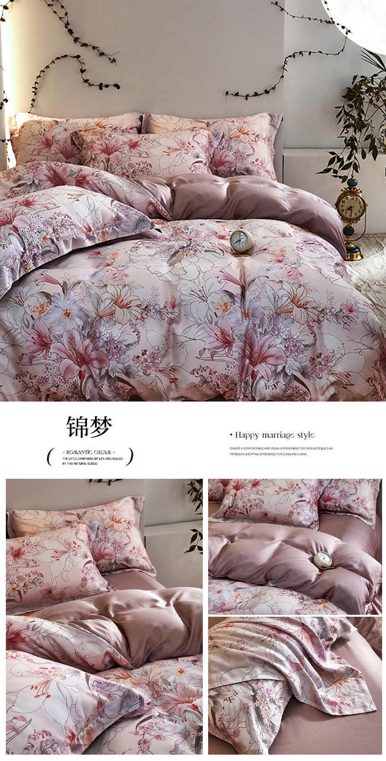 商品名称:未来家居 2025春夏新款100支莱赛尔天丝贡缎纯色印花系列高端礼盒四件套 锦梦