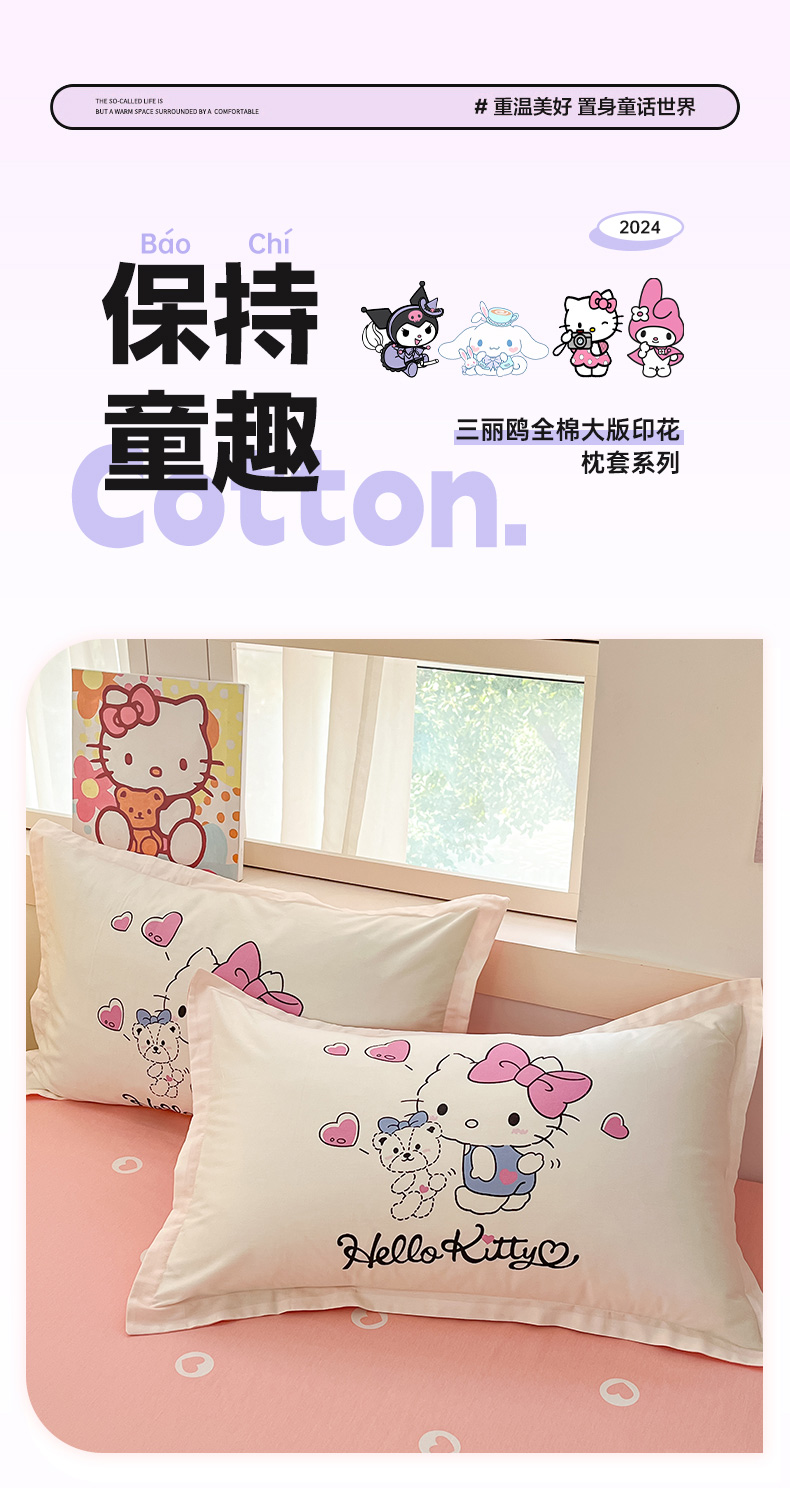 商品名称:博雅 2025新款三丽鸥全棉大版单枕套 漫画KT猫