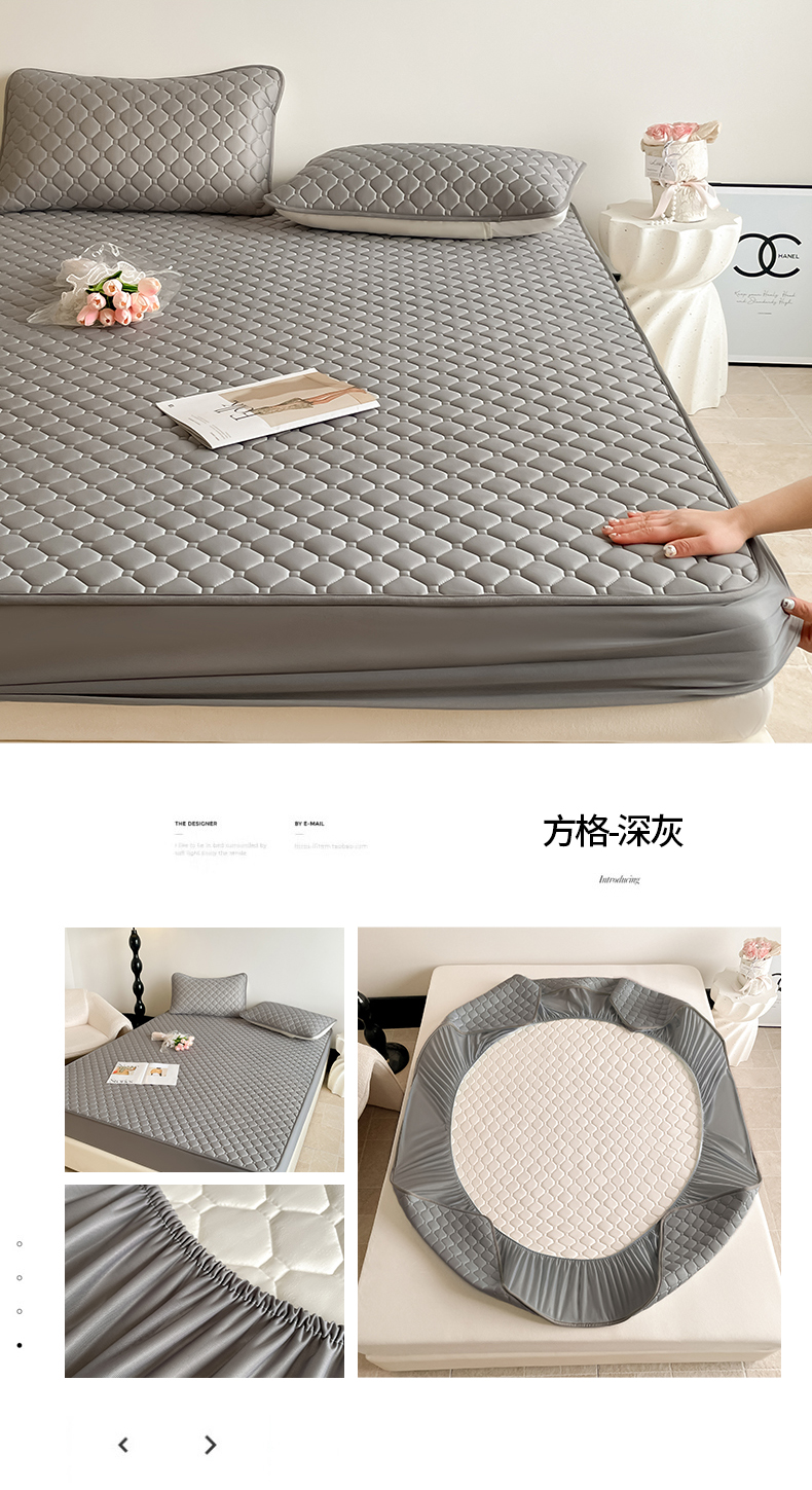 商品名称:2025新款加厚0.5纯色凉感丝单床笠乳胶凉席 方格-深灰