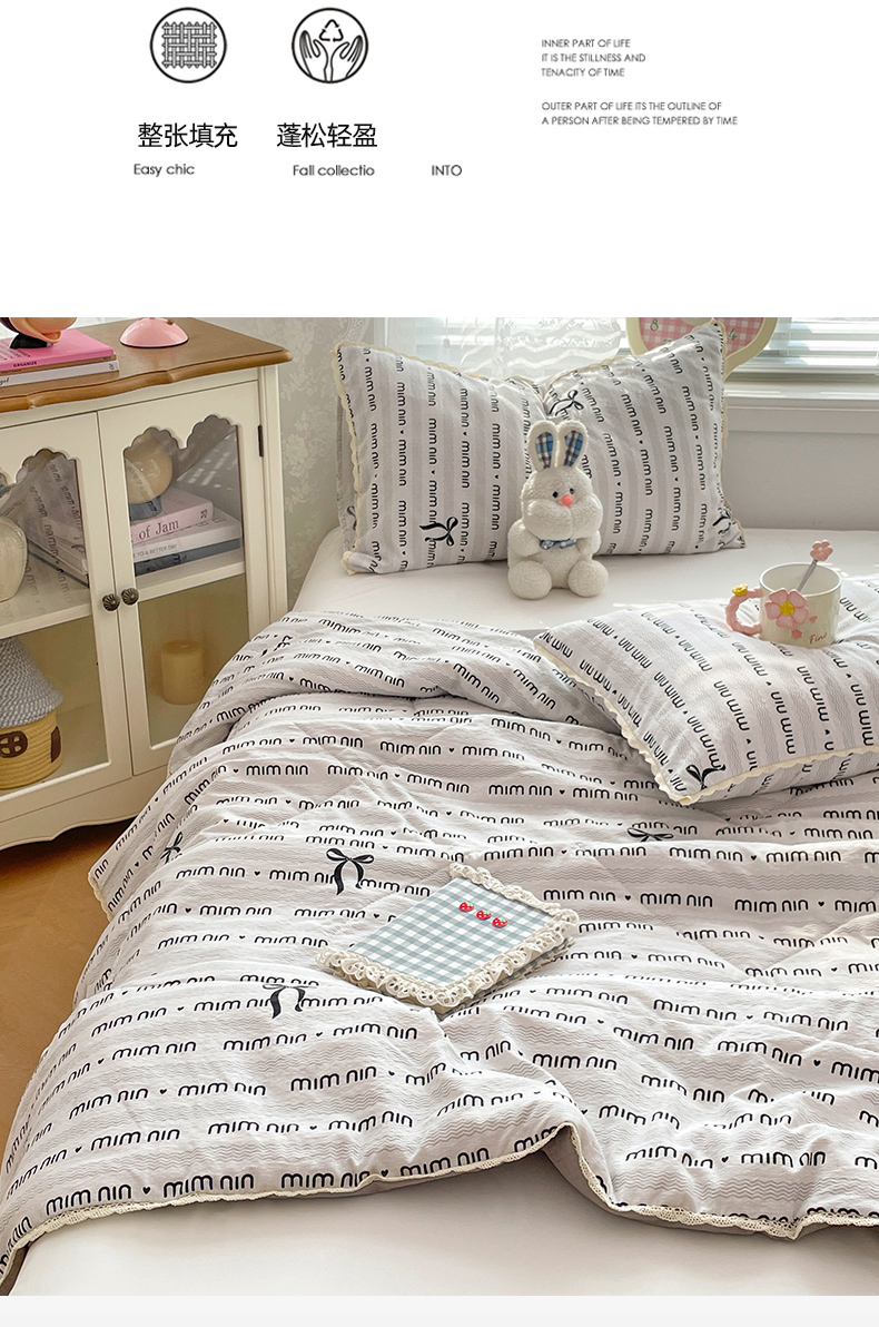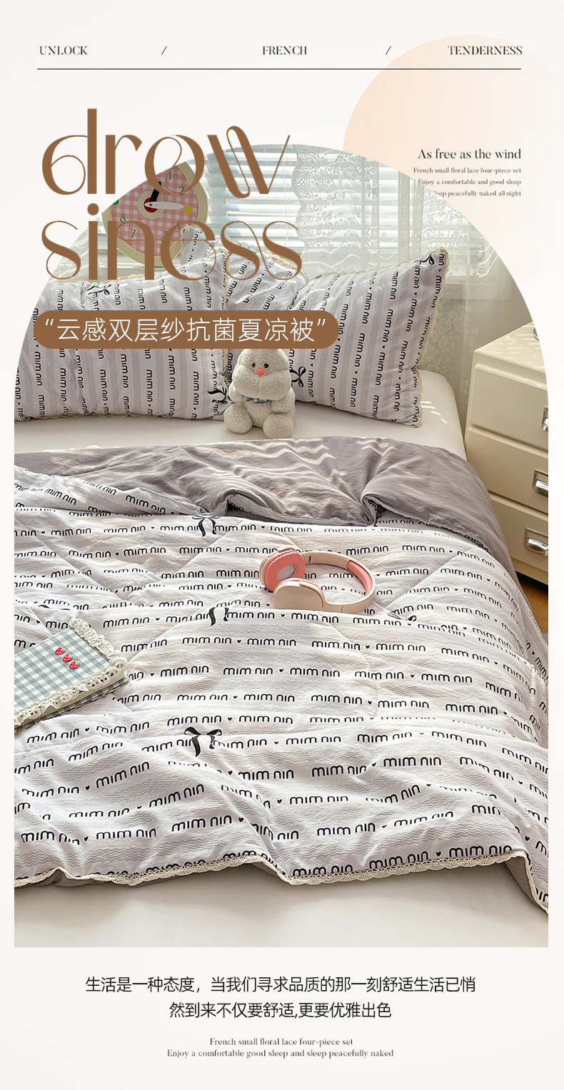 优承佳生活馆 2025新款云感双层纱浪漫小花边抗菌夏被子被芯 字母结