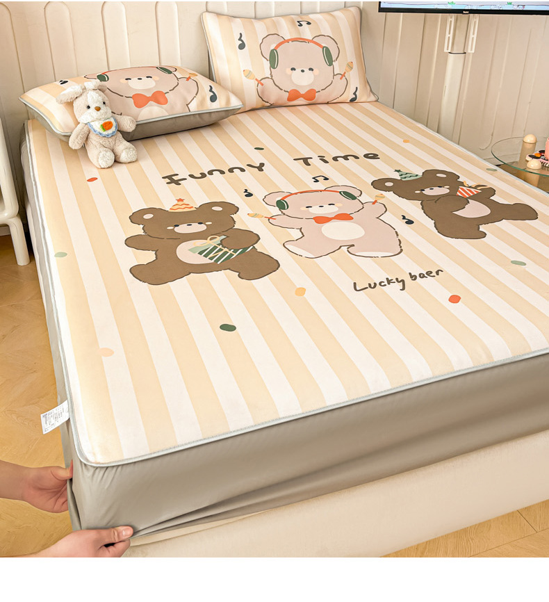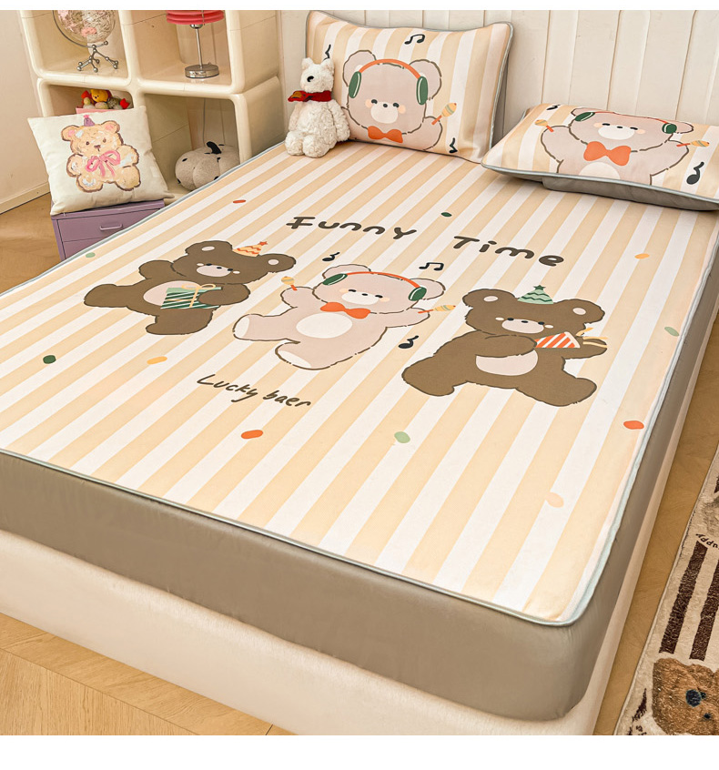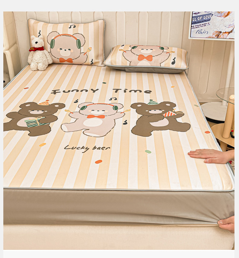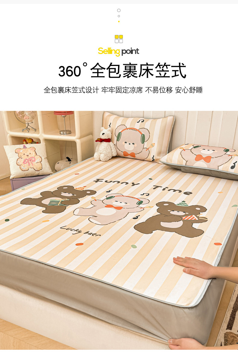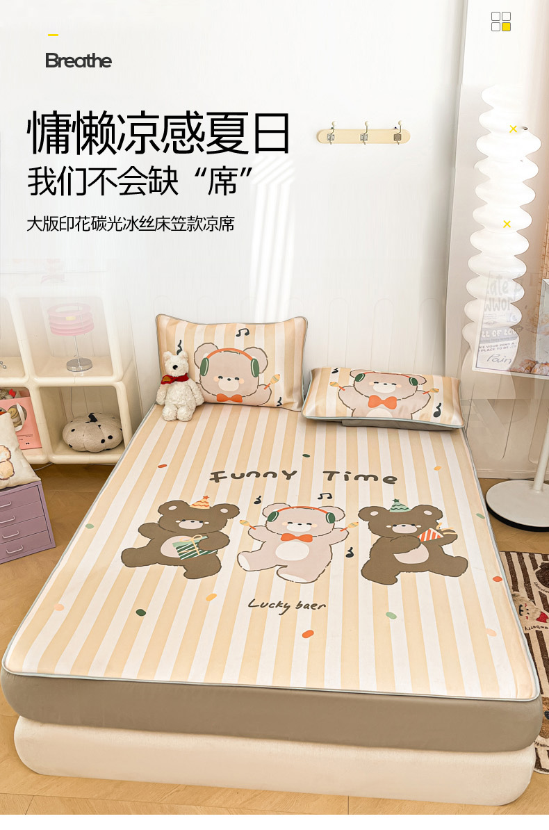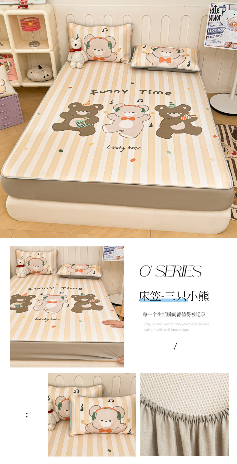2025新款大版印花冰丝席床笠 床笠-三只小熊