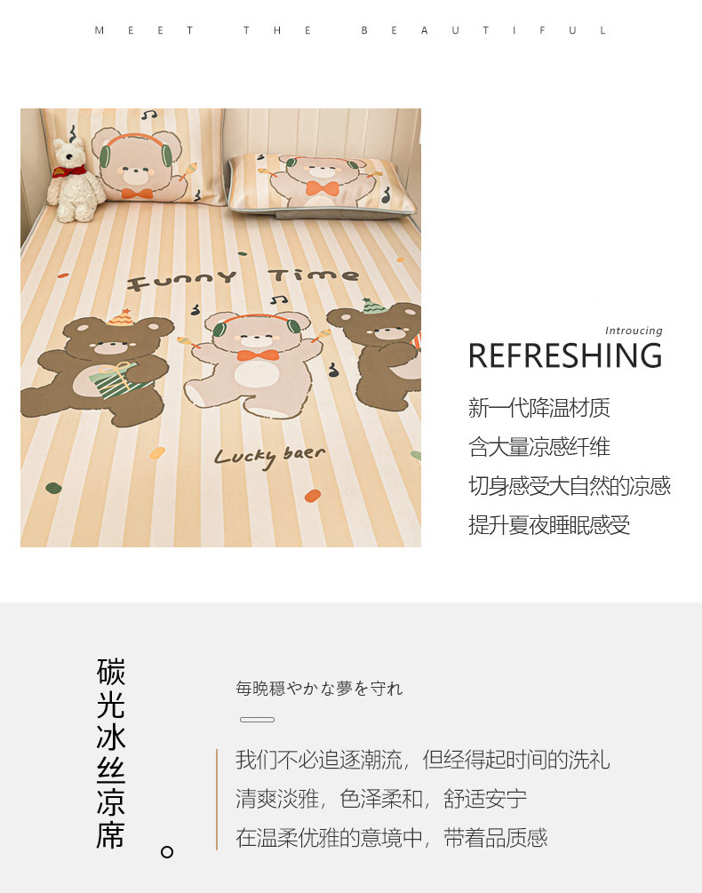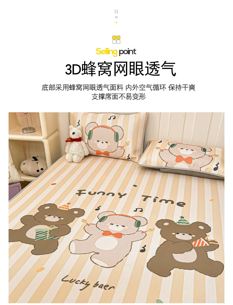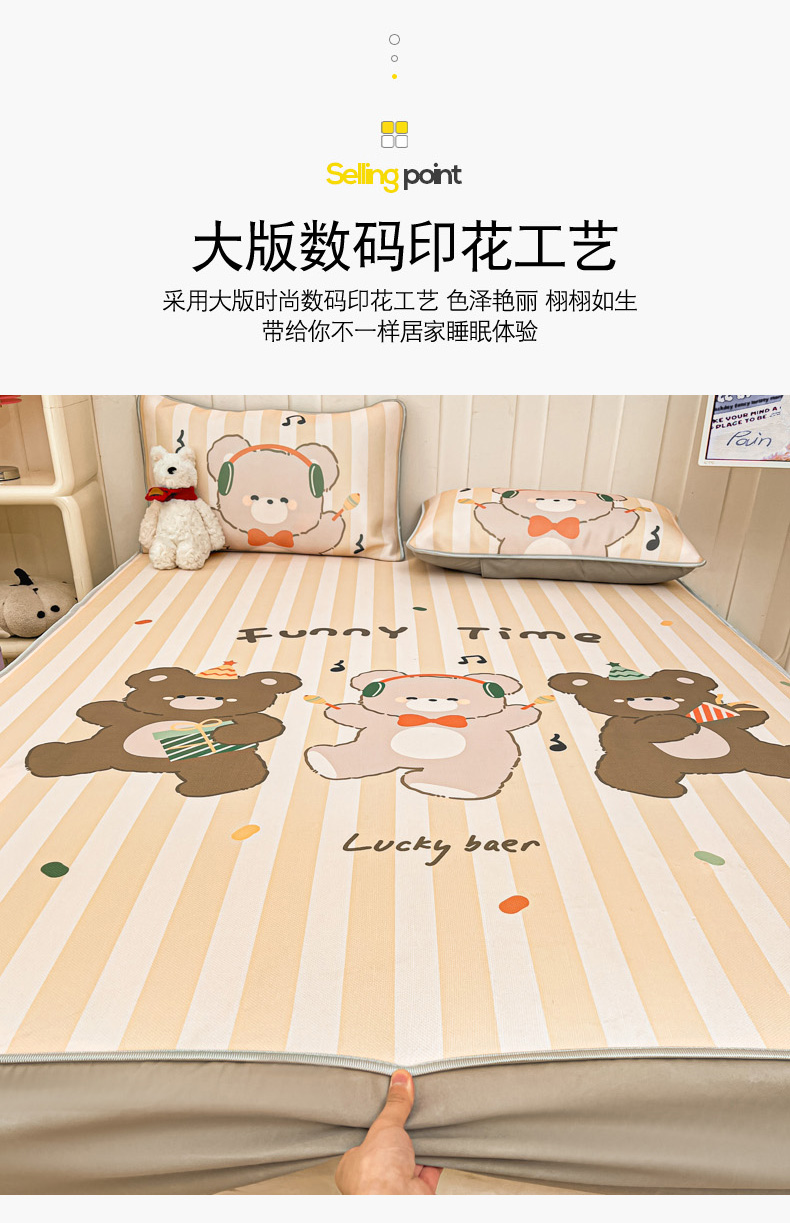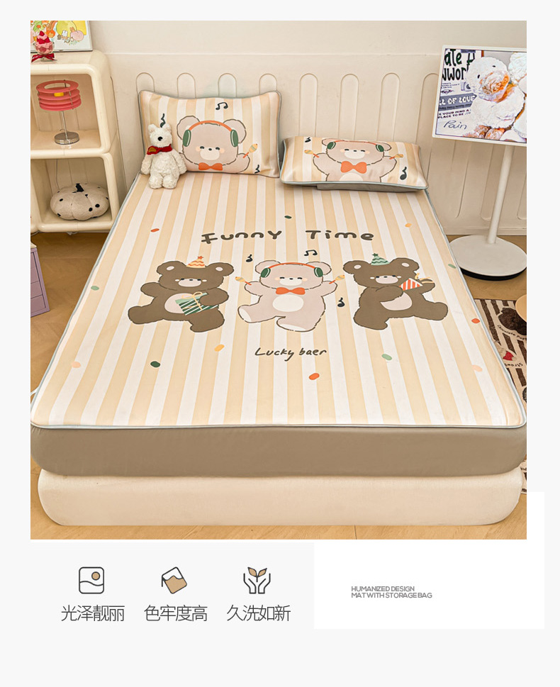 商品名称:2025新款大版印花冰丝席床笠 床笠-三只小熊