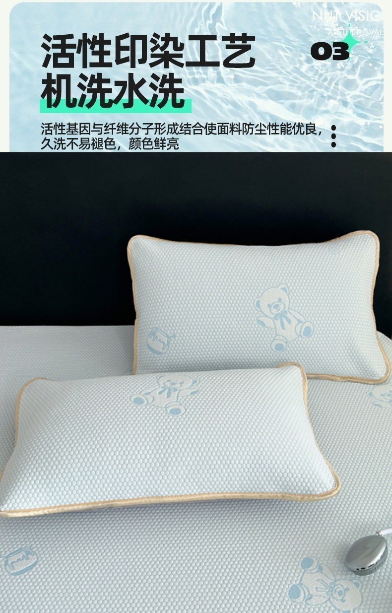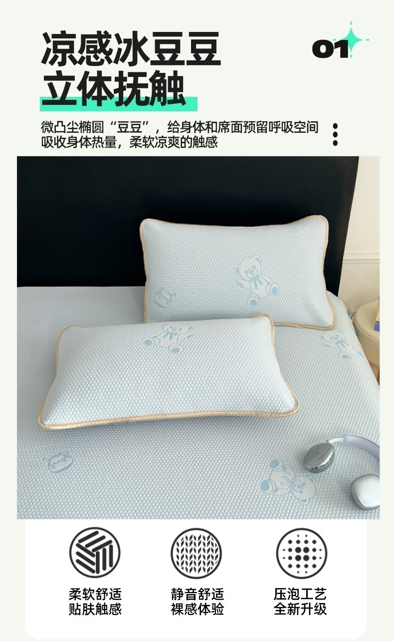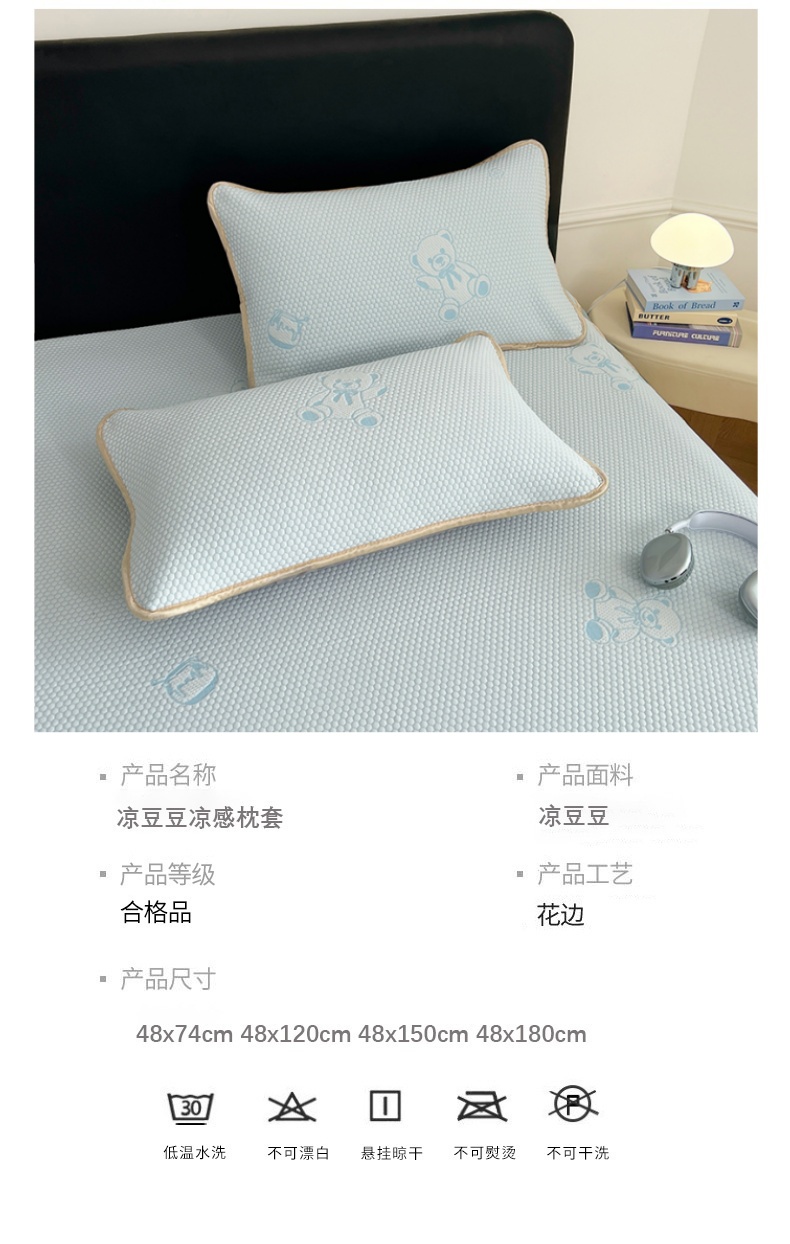 商品名称:圣比熊 2025新款凉感冰豆豆凉席枕套可水洗冰丝宿舍一只装枕头套一对枕芯套 冰豆豆-小熊蓝
