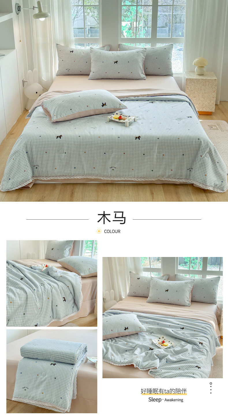 商品名称:斯卡诺家纺 2025新款针织双层纱韩版花边夏被四件套夏季夏凉被空调被 木马