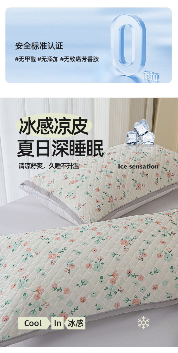 商品名称:美宜家 2025新款夏季凉感丝绗缝绑带枕巾隔脏吸汗冰丝枕巾 盛夏 一对