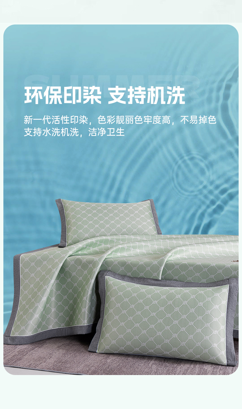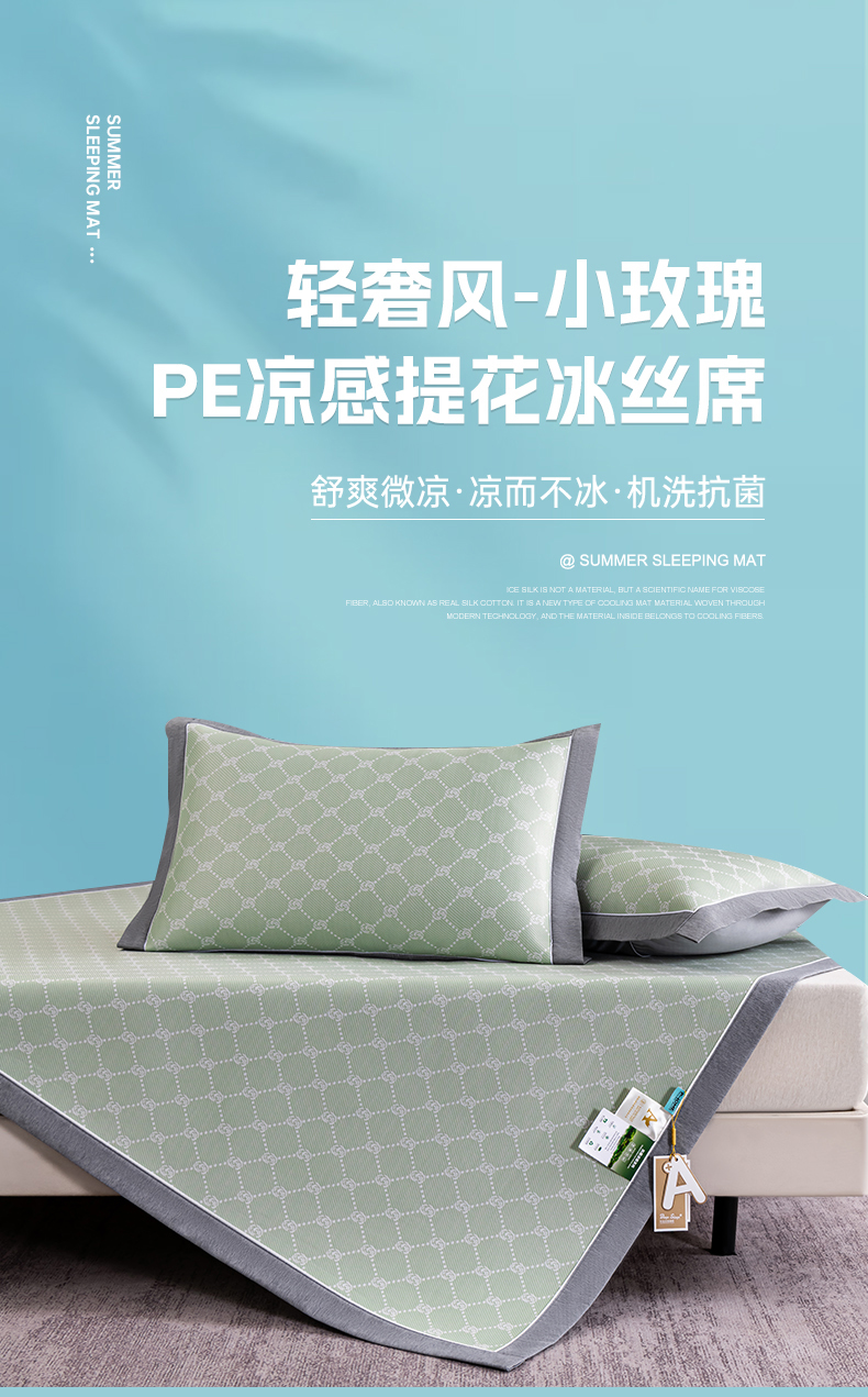 小牛席业 2025新款轻奢风-小玫瑰凉感冰丝席凉席席子系列 绿色