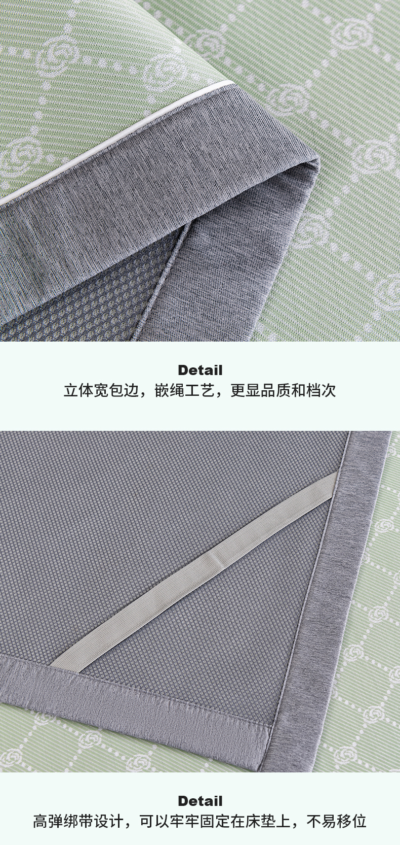 商品名称:小牛席业 2025新款轻奢风-小玫瑰凉感冰丝席凉席席子系列 绿色