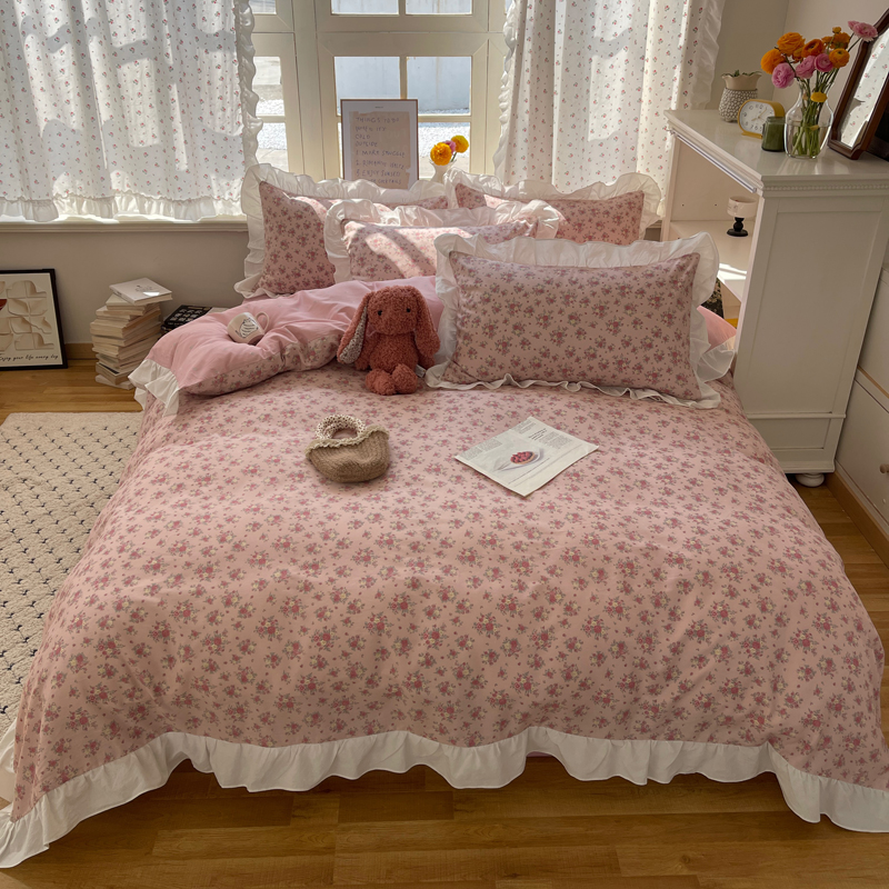 桃喜2025新款全棉纯棉碎花花边款13070四件套 系列一 绯恋花边款