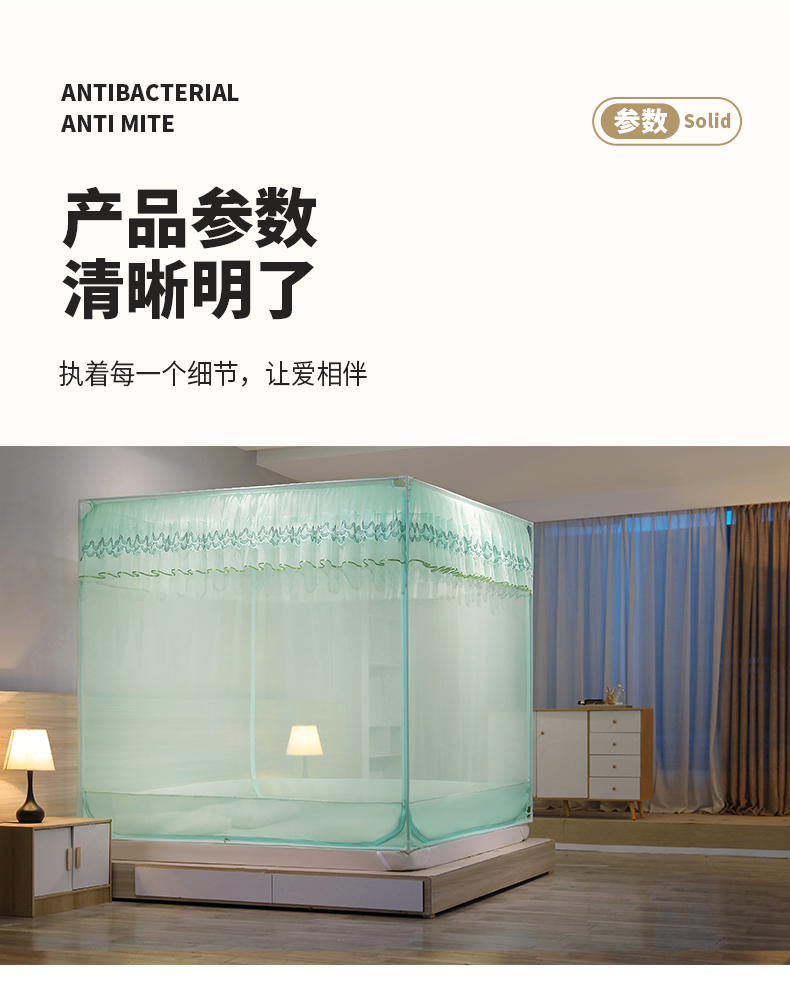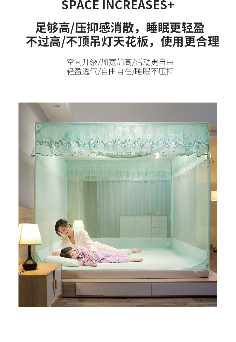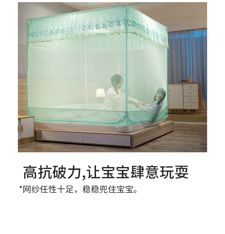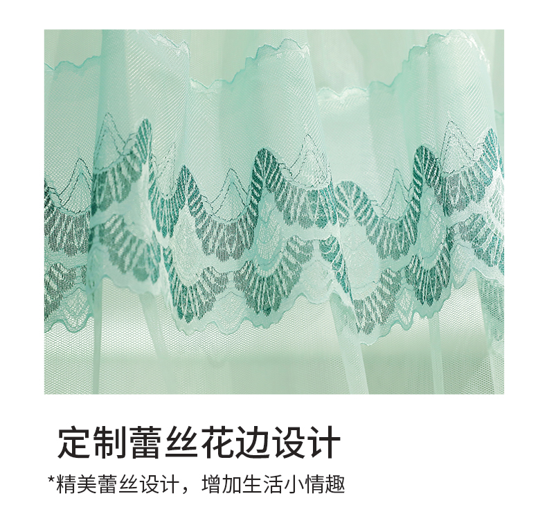 (总)夏彩 2025新款蕾丝U型防摔坐床蚊帐-88630,绿雅灰,藕玉色,香槟色