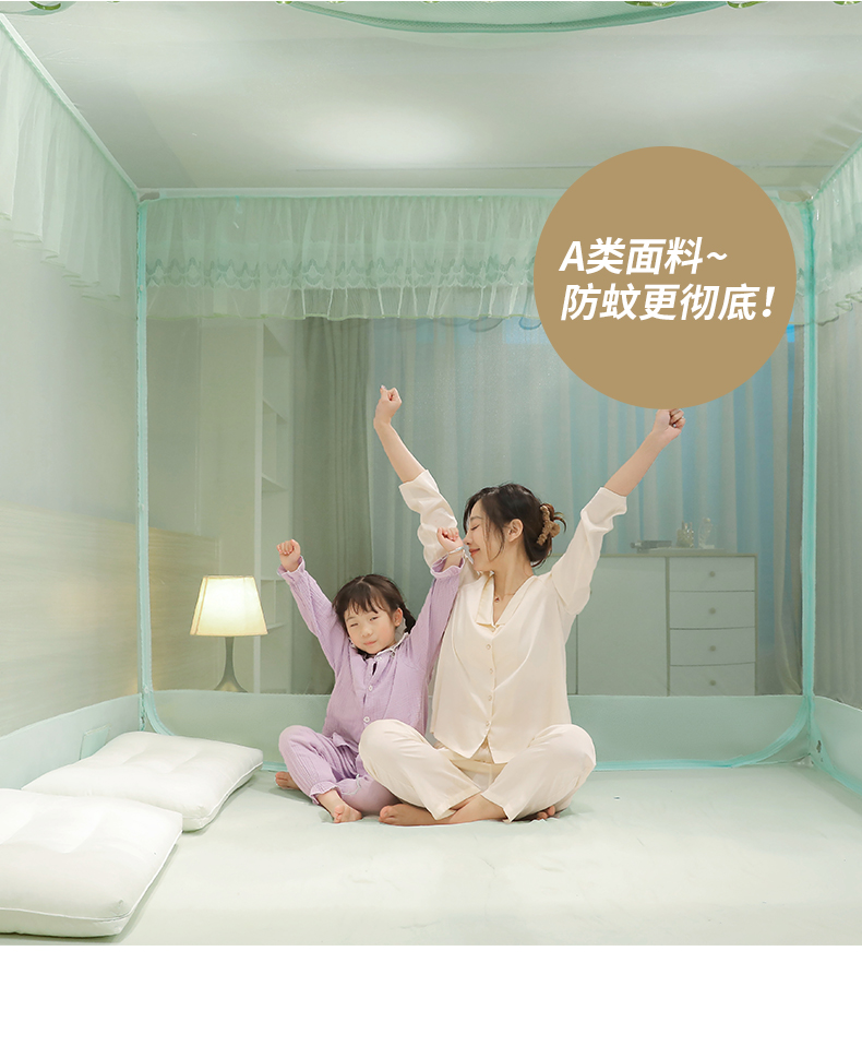 (总)夏彩 2025新款浪漫唯美T+U床笠式坐床外穿防摔蚊帐-88610,886610冰海蓝,886610极光白,886610浅粉玉,886610浅水蓝,886610蔷薇粉,886610杏仁黄,886610雅士灰