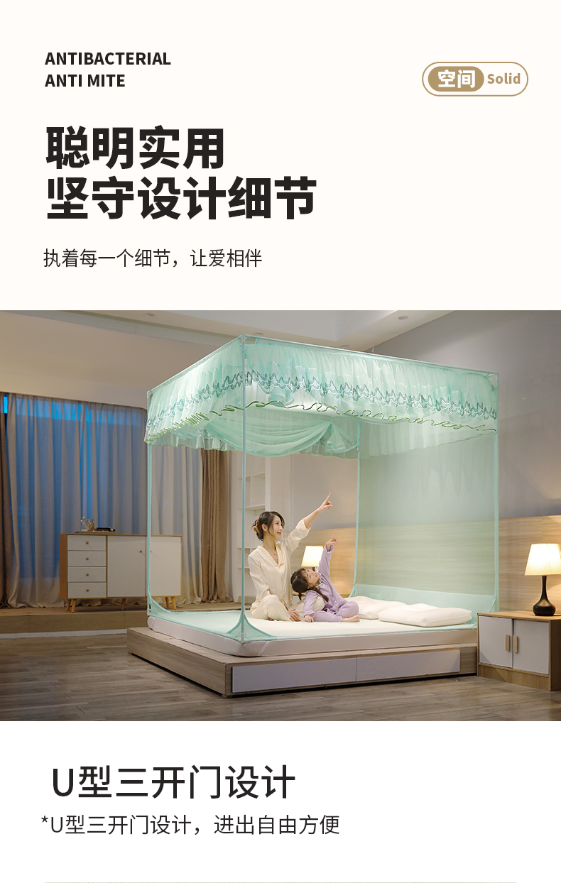 商品名称:夏彩 2025新款U型三开门外穿坐床蚊帐系列-货号88538/88539 88538水绿