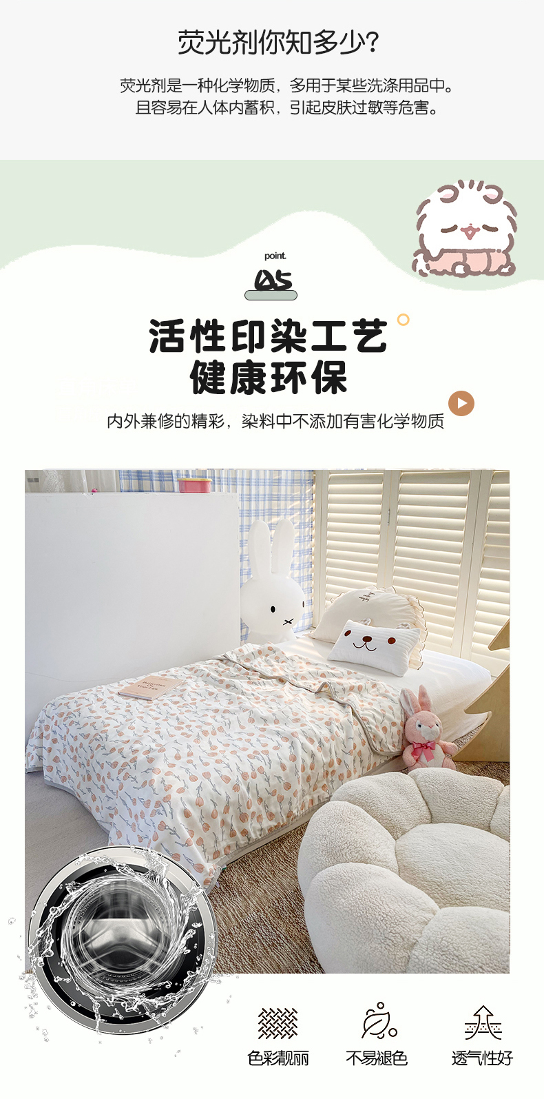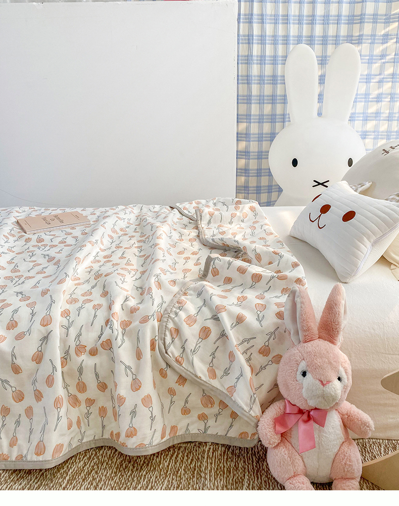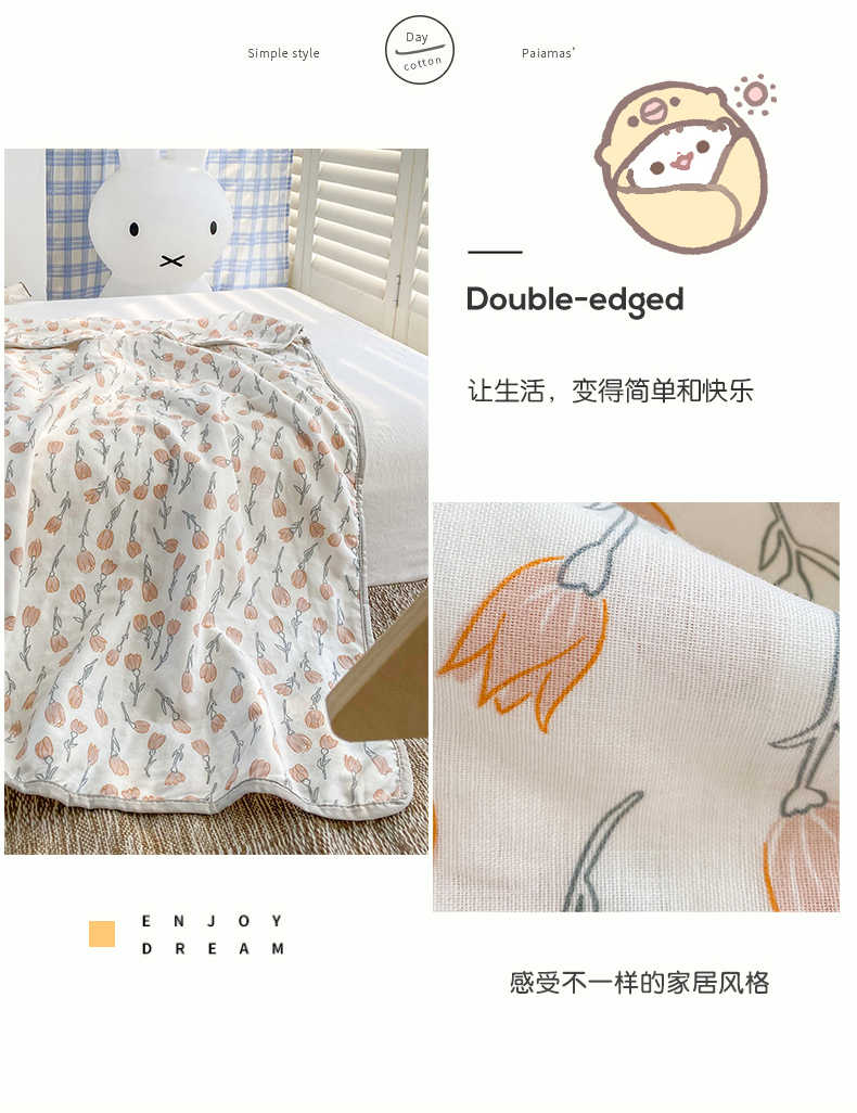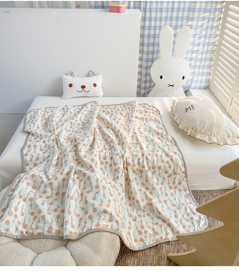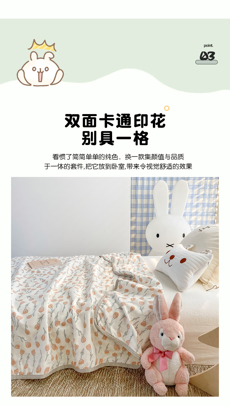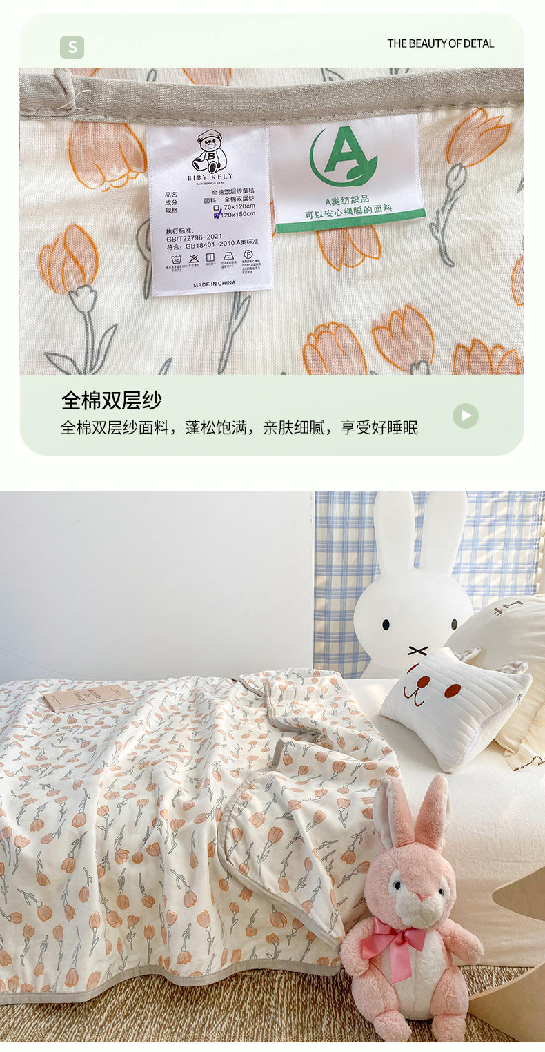 (总)潮邦 2025新款全棉双层纱多功能盖毯,白露-白,背包兔,彩虹糖,车厘子,动物派,秋之花,甜心字母,兔跳跳,兔之园,心怡粉,雨伞兔,棕熊