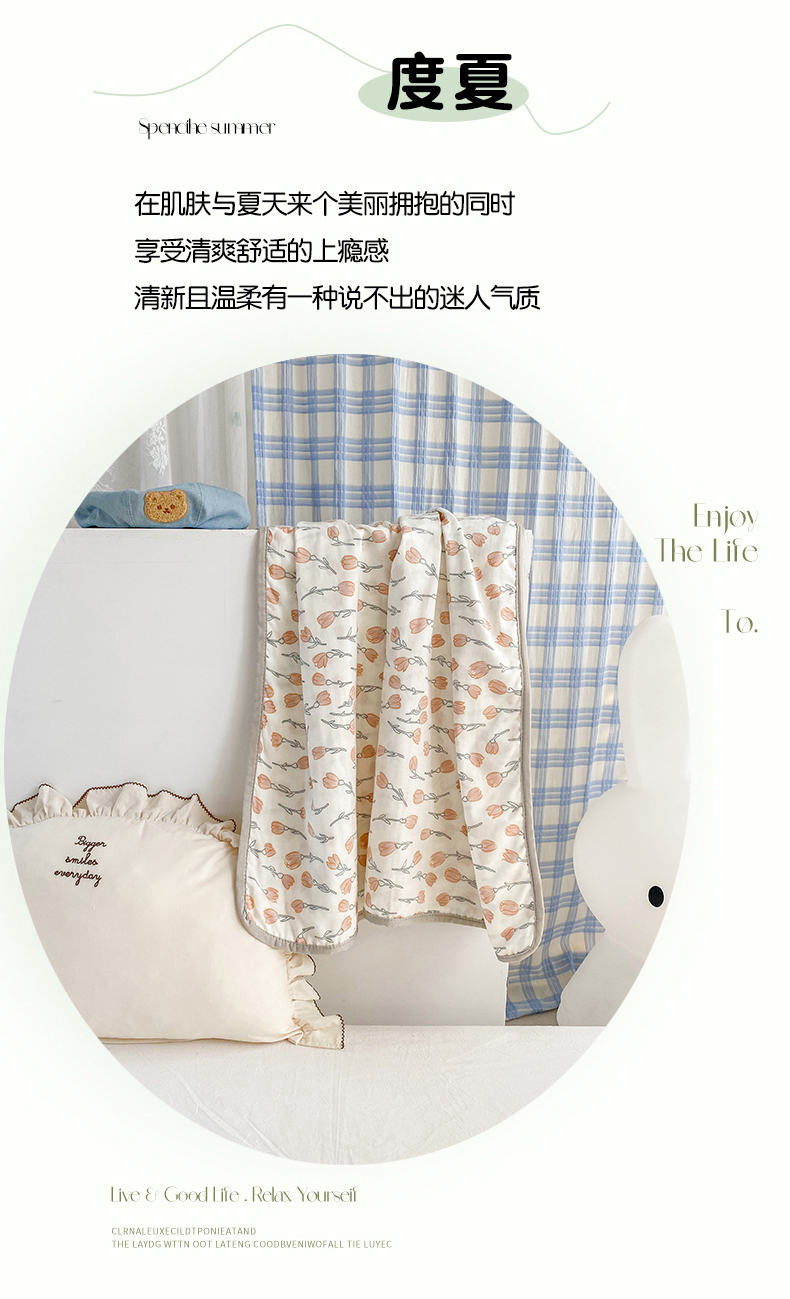 潮邦 2025新款全棉双层纱多功能盖毯 白露-白
