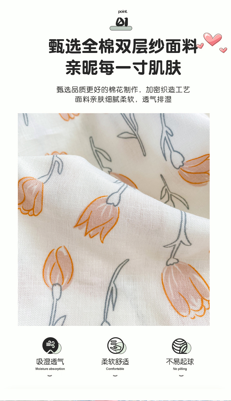 商品名称:潮邦 2025新款全棉双层纱多功能盖毯 白露-白