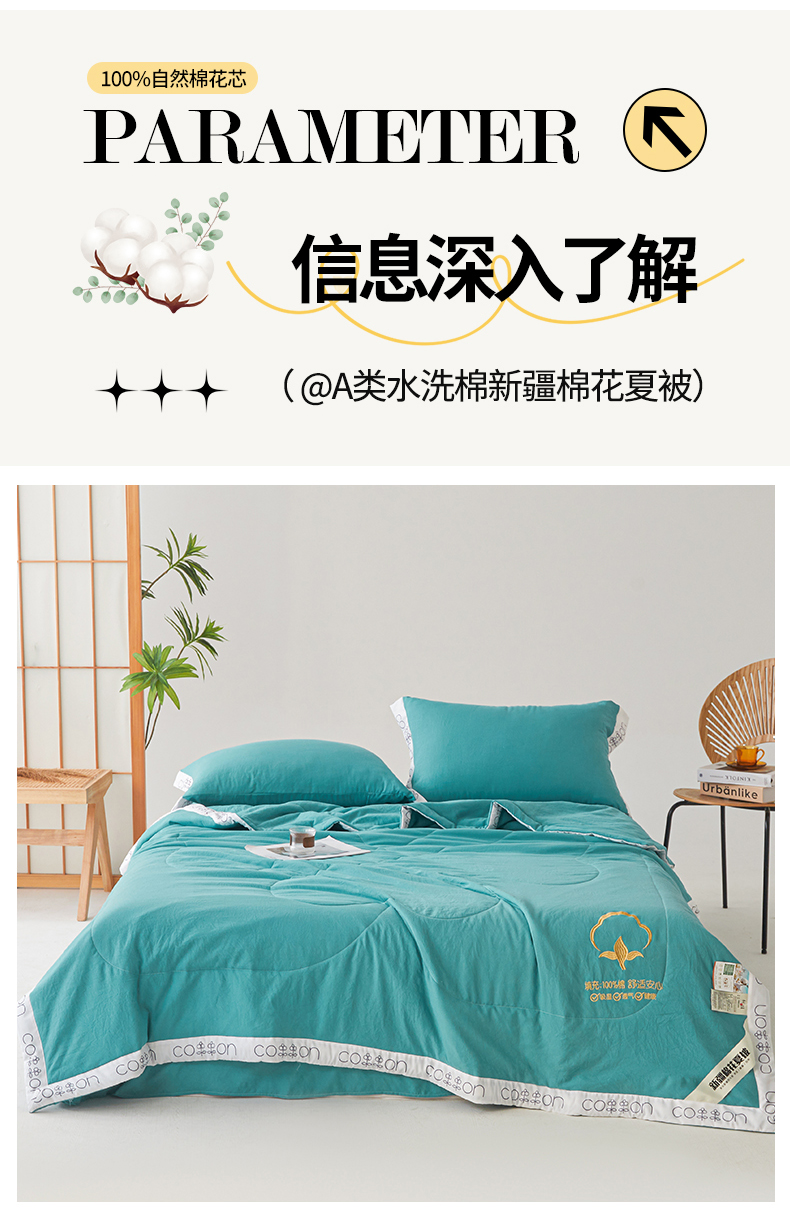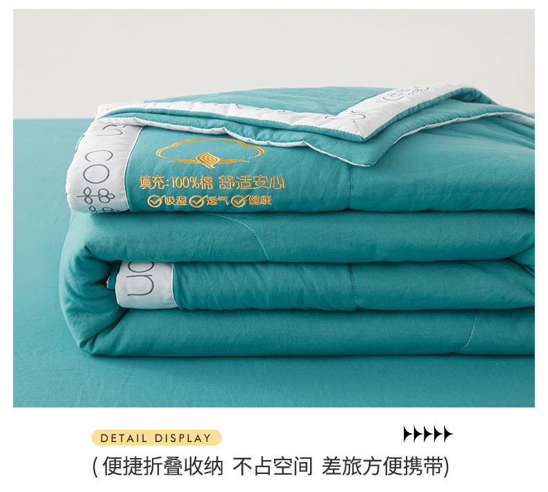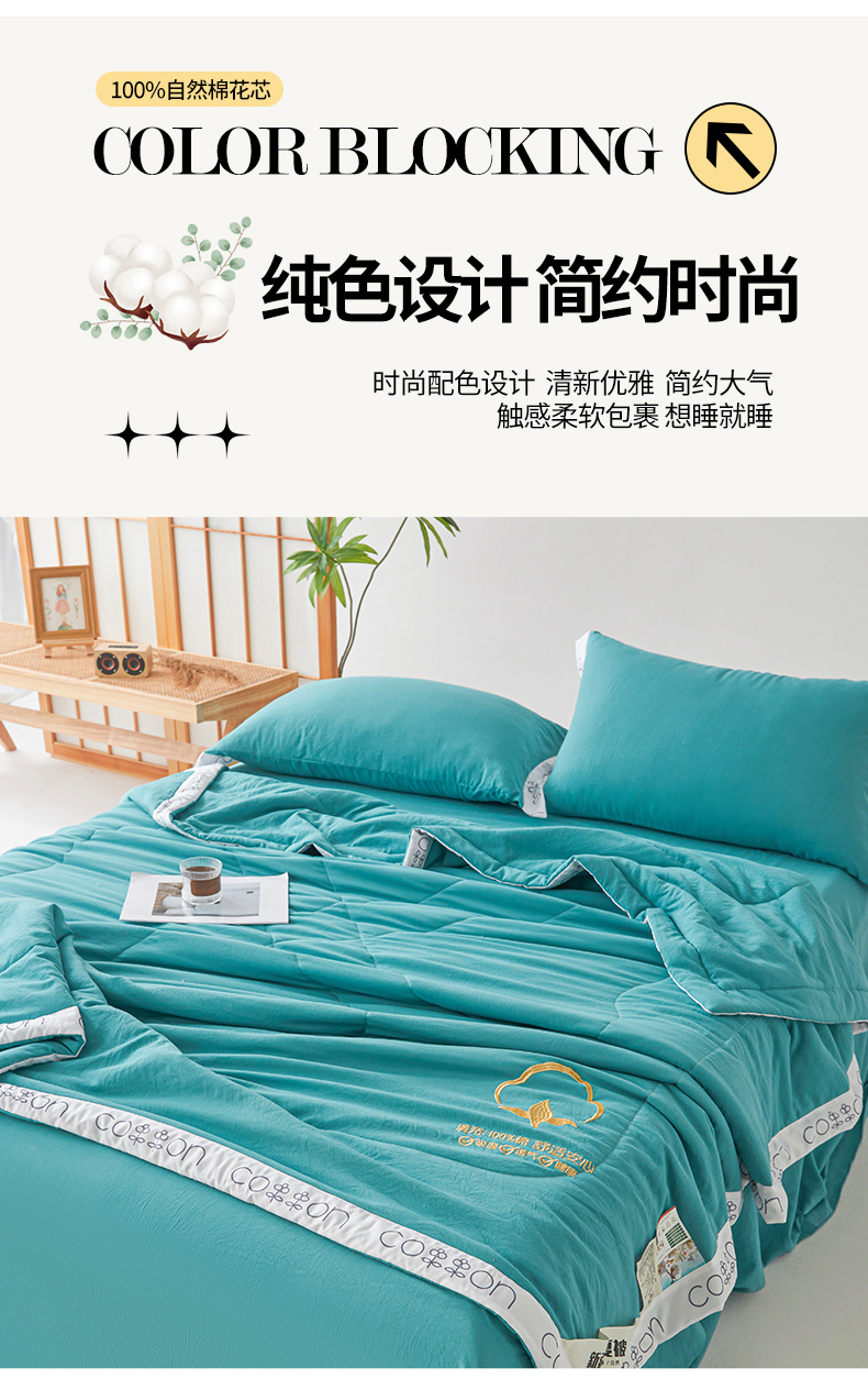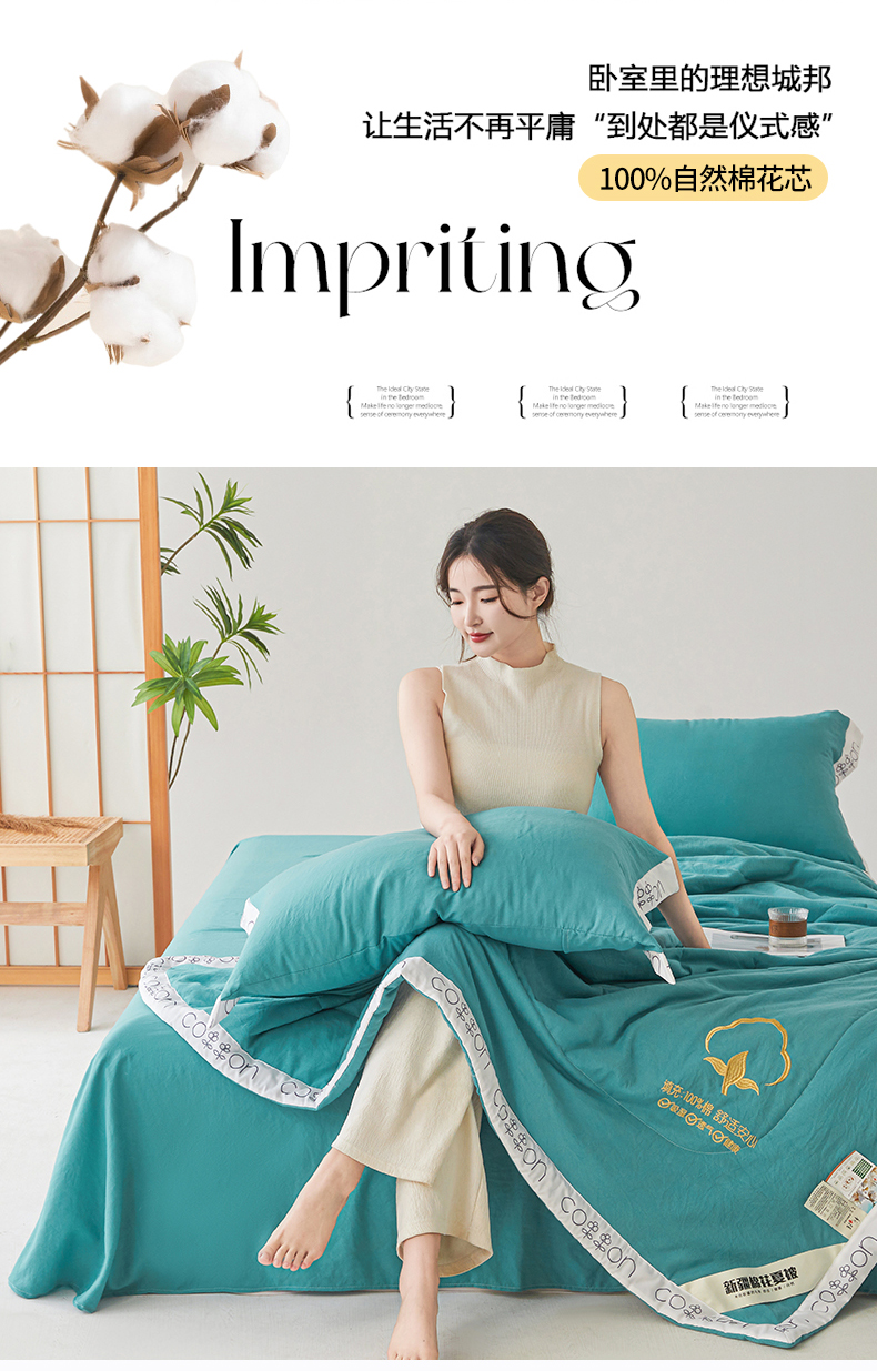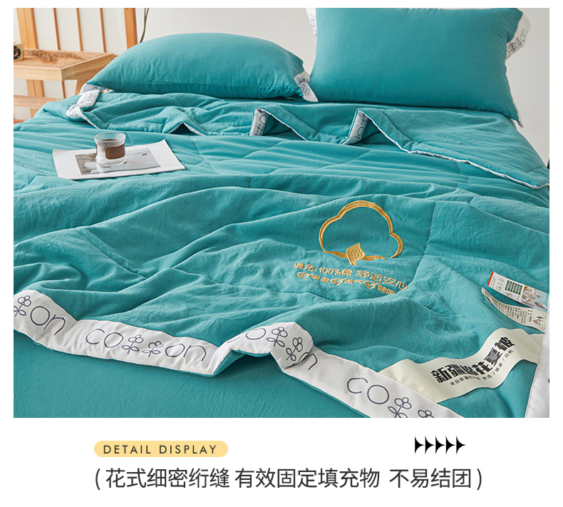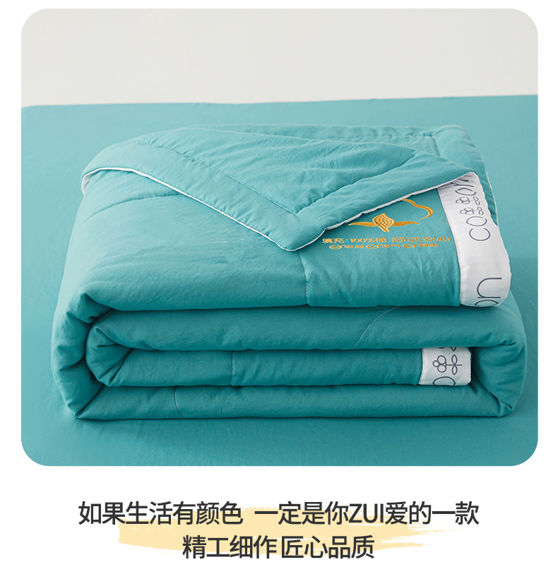 商品名称:西域种棉人·千百笠 2025新款A类100%新疆棉花夏凉被纯棉全棉填充毛巾绣绣花纯色双拼原棉空调被夏被 千寻蔚蓝
