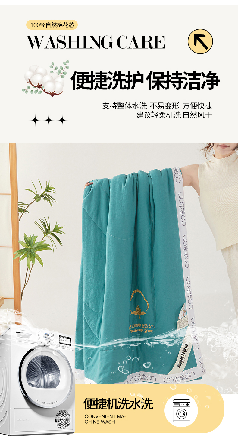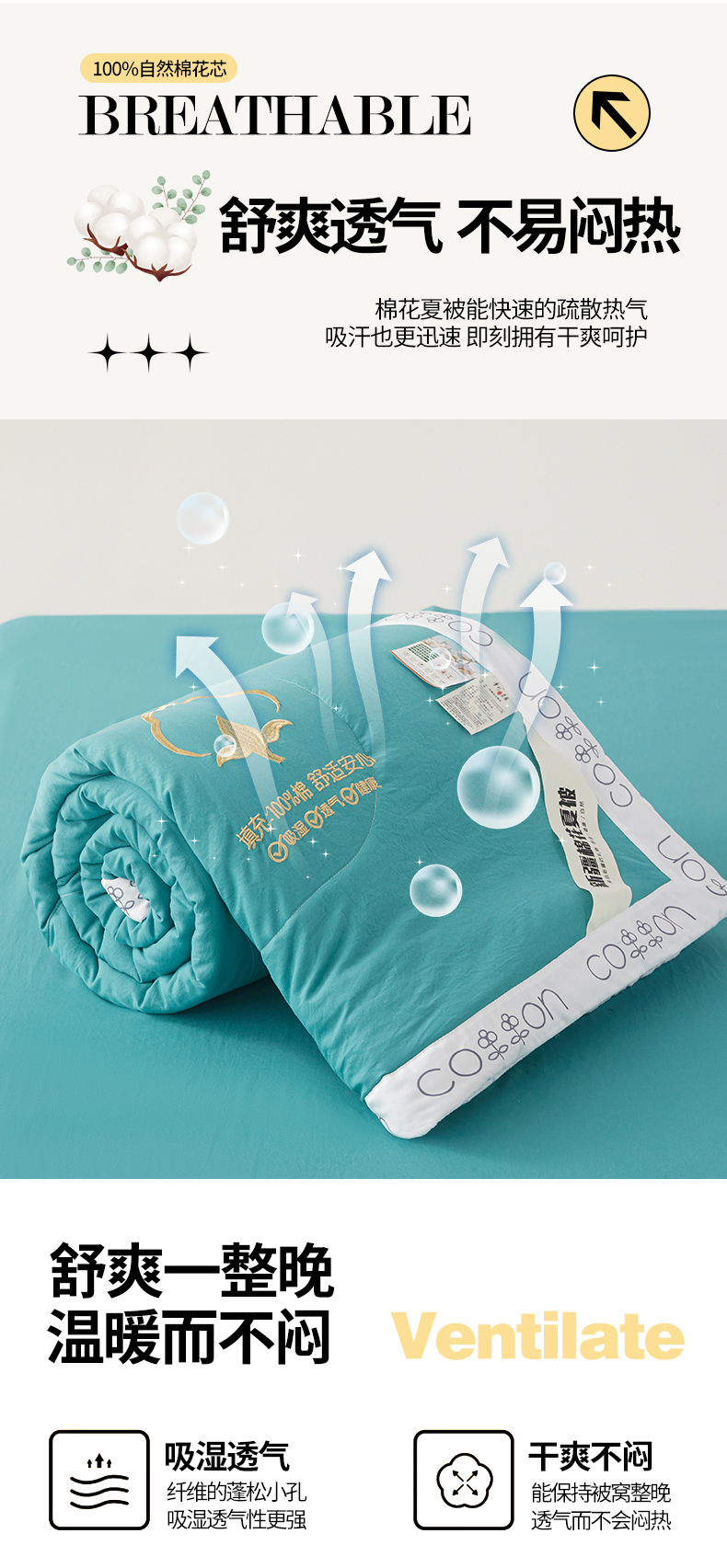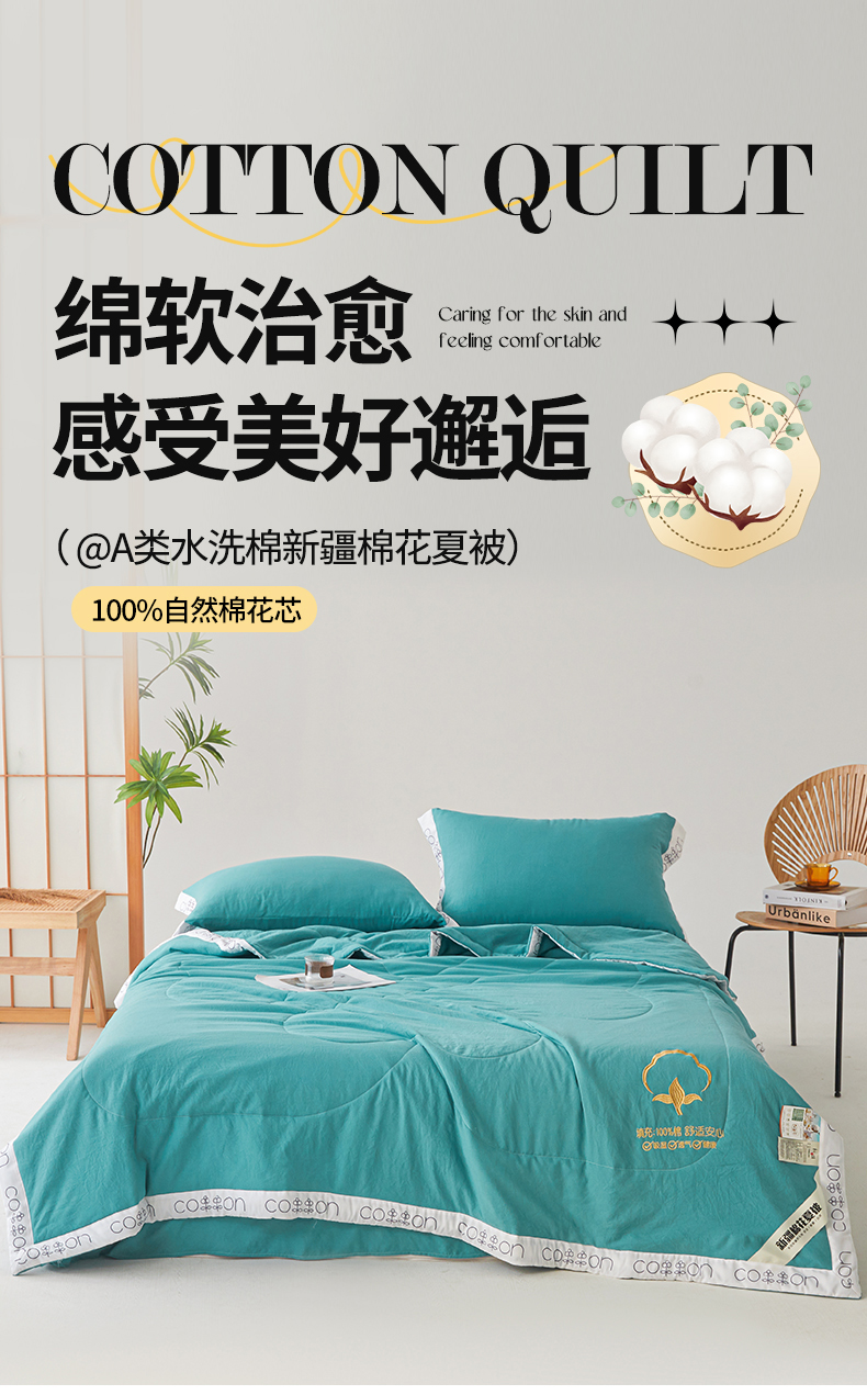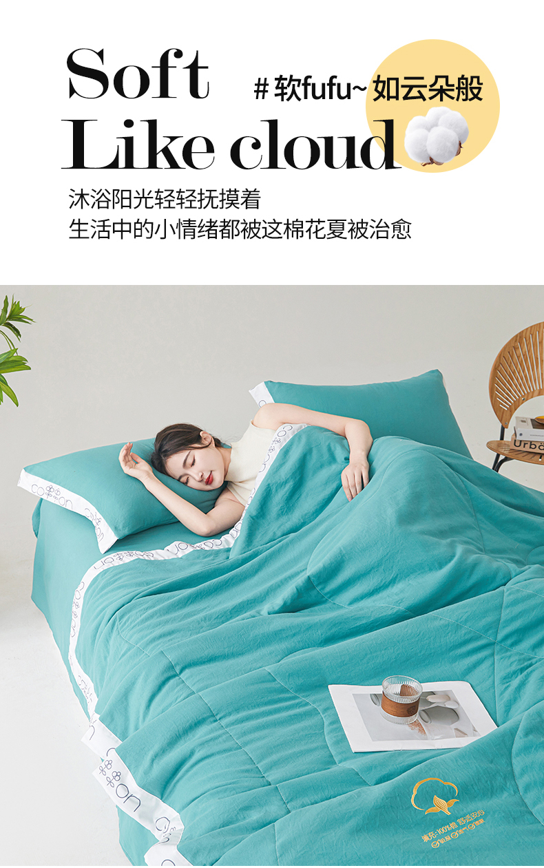 商品名称:西域种棉人·千百笠 2025新款A类100%新疆棉花夏凉被纯棉全棉填充毛巾绣绣花纯色双拼原棉空调被夏被 千寻蔚蓝