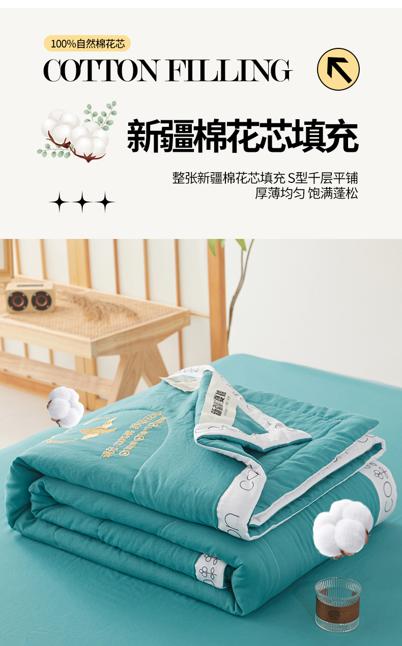 西域种棉人·千百笠 2025新款A类100%新疆棉花夏凉被纯棉全棉填充毛巾绣绣花纯色双拼原棉空调被夏被 千寻蔚蓝