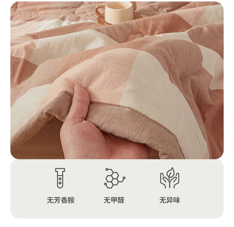 商品名称:西域种棉人·千百笠 2025新款A类100%新疆棉花夏凉被纯棉全棉填充原棉空调被手工宽边水洗棉夏被 卡其大格