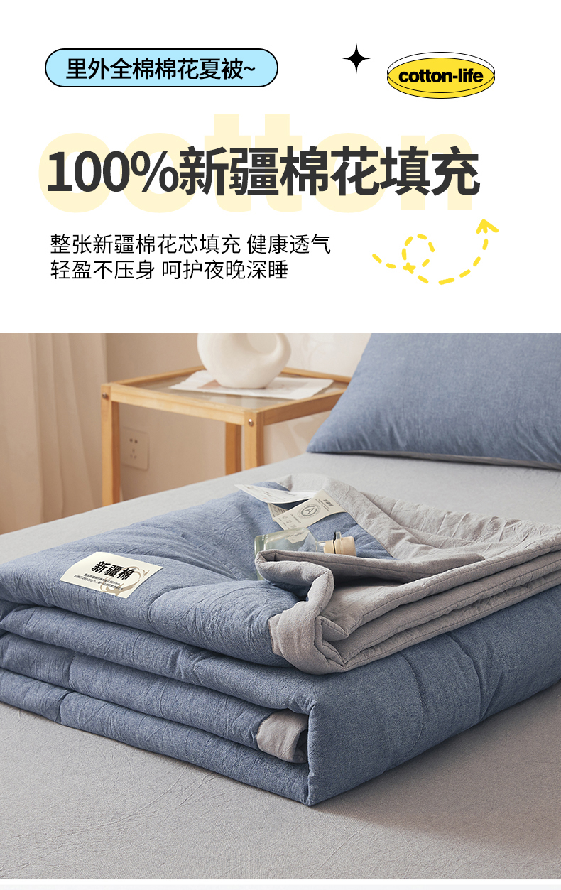商品名称:2025新款A类里外全棉夏凉被100%新疆棉纯棉全棉填充无印格子款空调被原棉夏被 里外全棉-双拼蓝