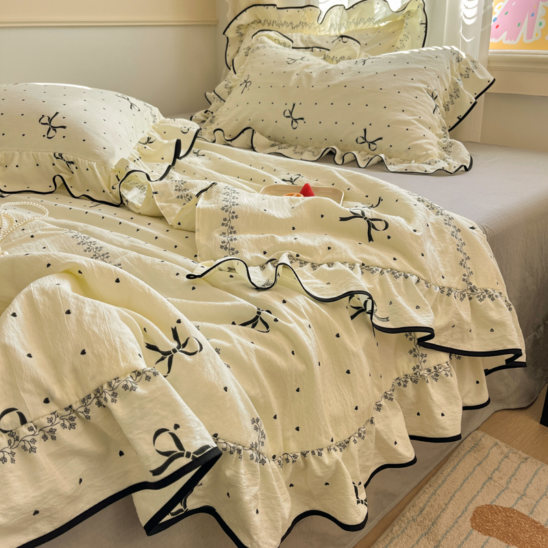 (总)欧尚 2026新款花边床盖四件套,春和,花束,花野,灰樱桃,咖爱心,咖豹纹,咖啡小猫,梨花落,绿爱心,梦境,木马,奶油波点,暖橘枝,暖心,人间草木,田园兔,小女孩,星愿,摇摇马,紫爱心,紫豹纹,紫苏