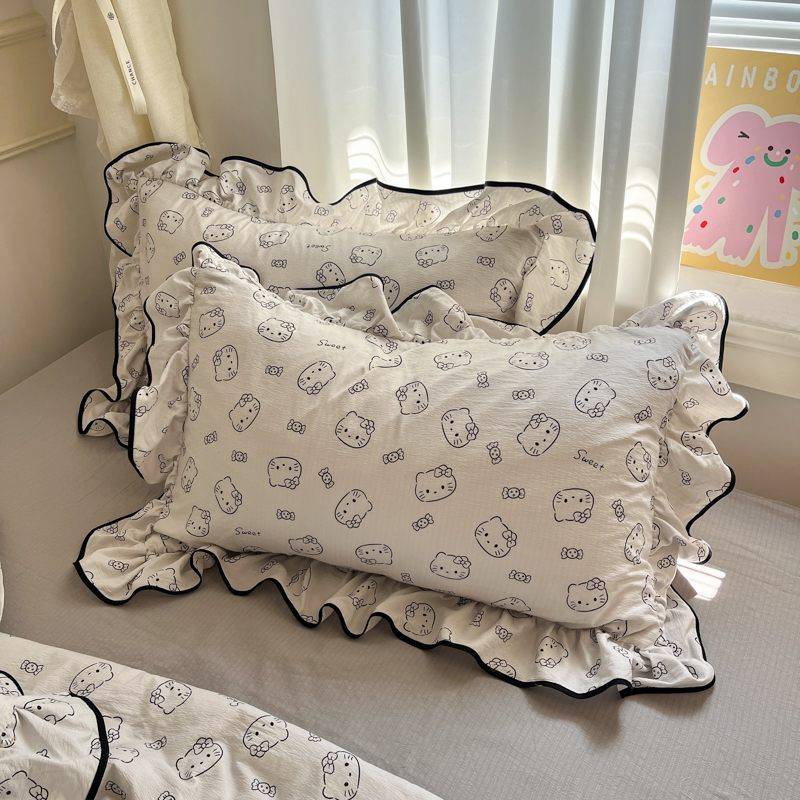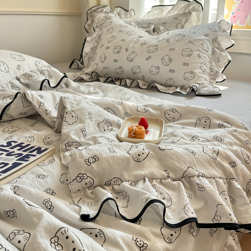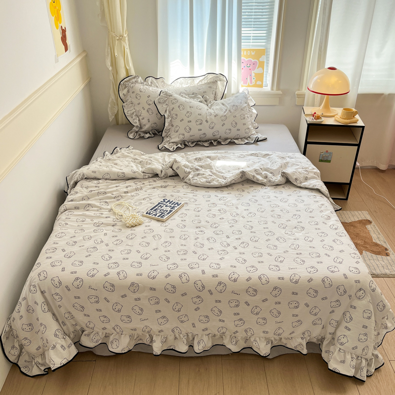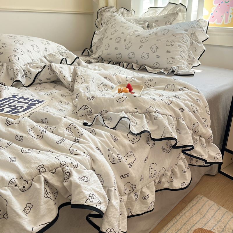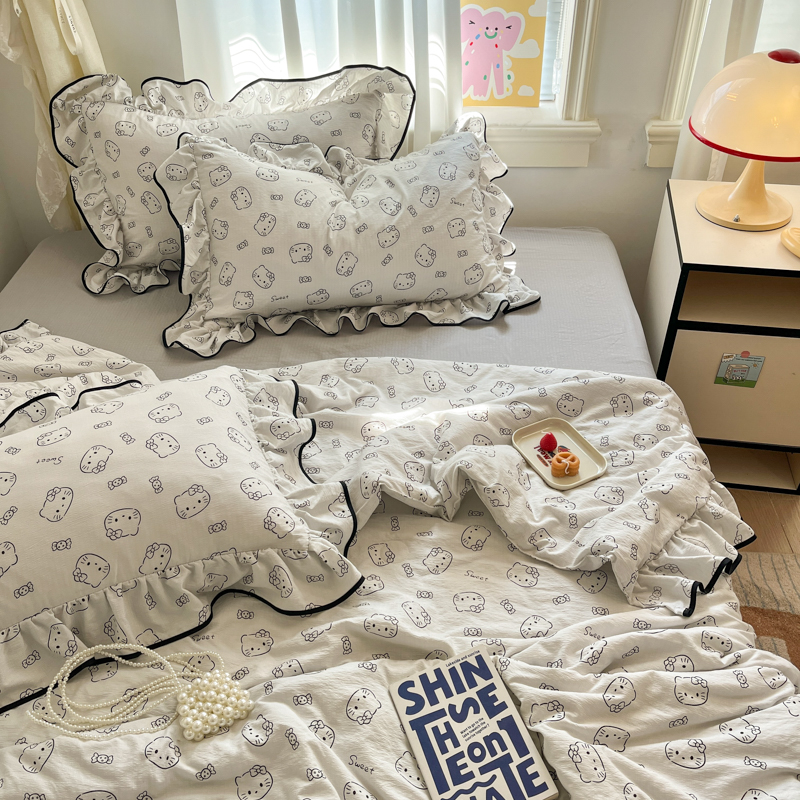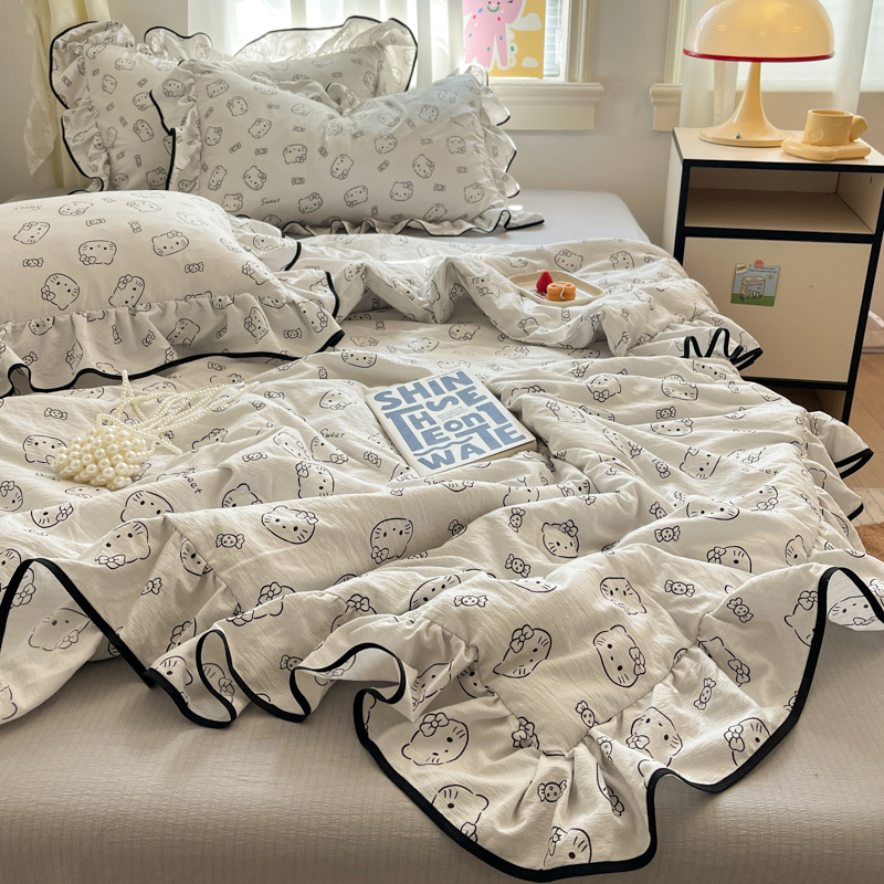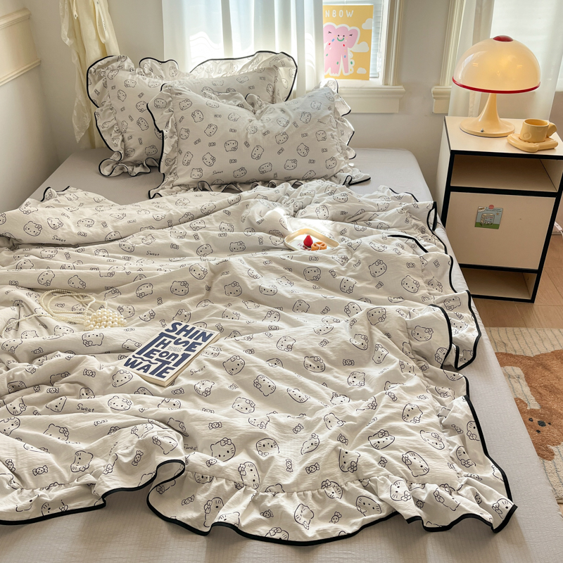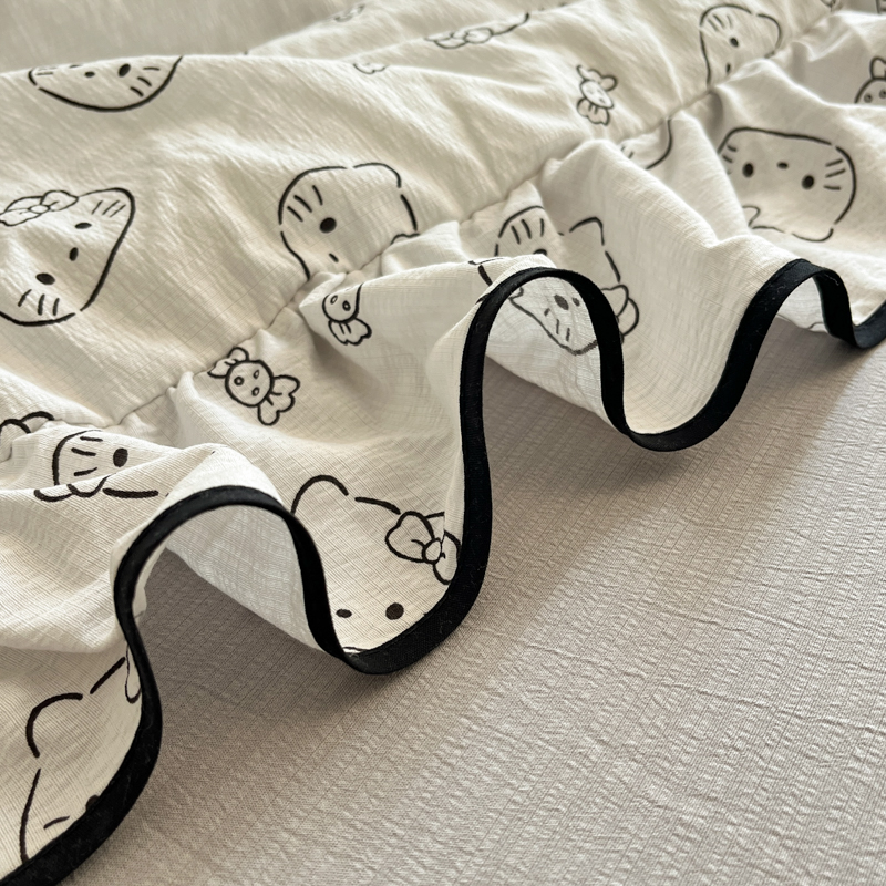 商品名称:欧尚 2025新款细黑边夏被床单床盖三件套 小猫咪