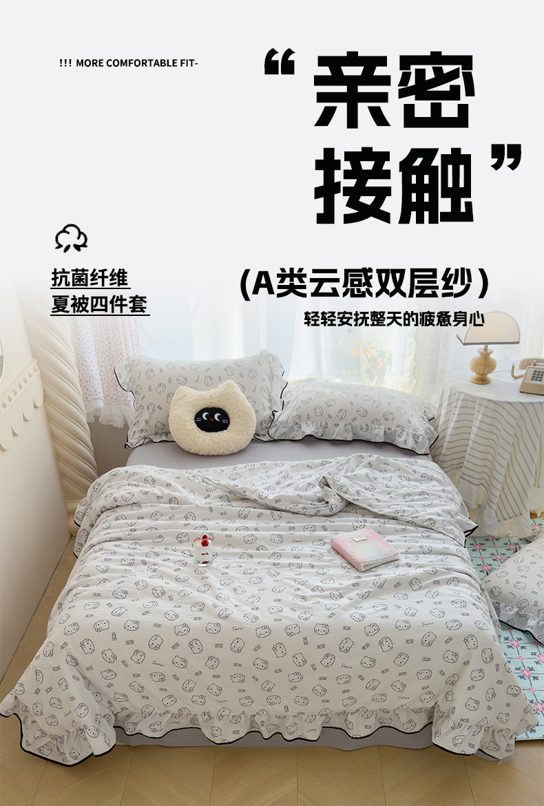 欧尚2025新款BYS-云感纱MEB夏被四件套系列 MEB-猫咪恋人
